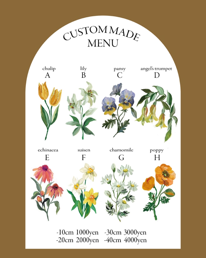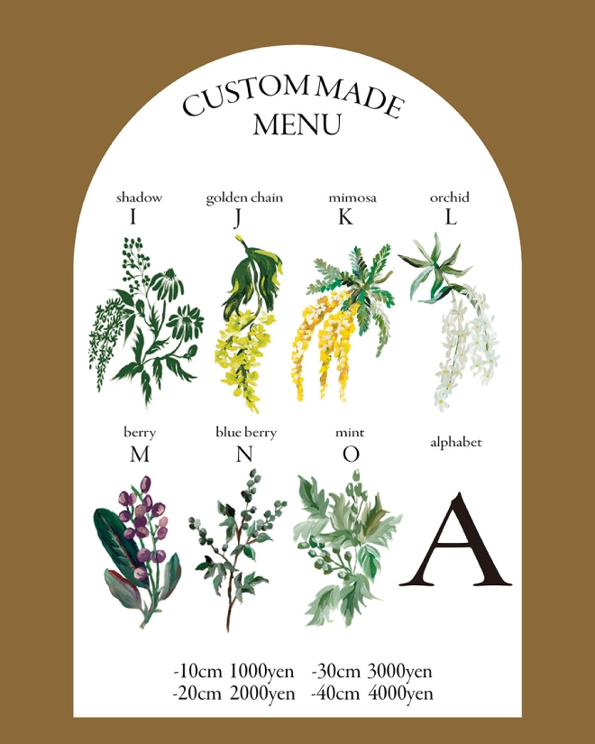 その他にも期間中、オーダーイベントも開催を予定しています。用意したメニュー表の中からお好きなモチーフやサイズをお選びいただき、あなただけの組み合わせでペイントをさせていただきます。今回は〈SELECT by BAYCREW'S〉のスペシャルメニューとしてアルファベットの文字入れも可能となっています。