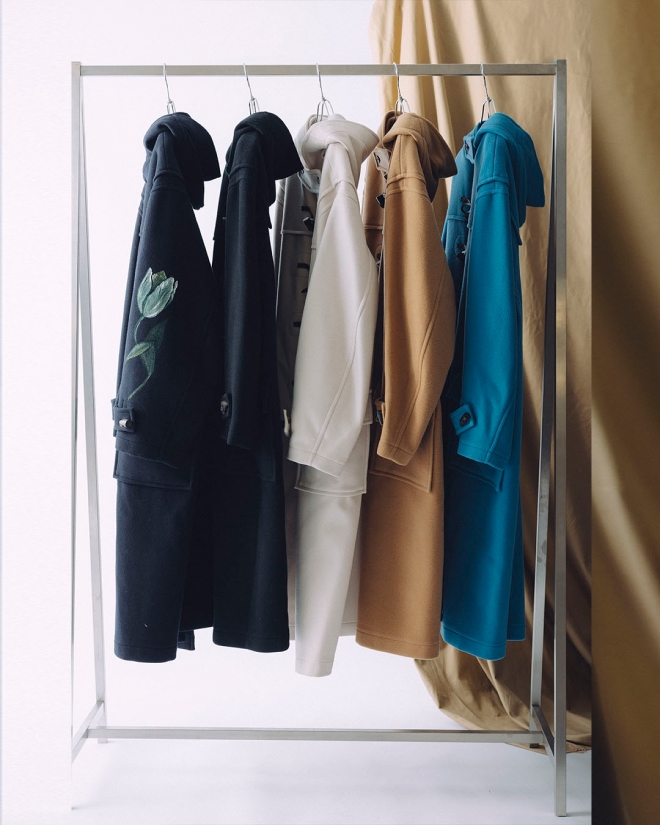 また、英国で最も歴史のあるダッフルコートのメーカーとして有名な〈MONTGOMERY/モンゴメリー〉とのスペシャルなアイテムも展開。今回特別に、ペイントを施したピースも数量限定でご用意しています。