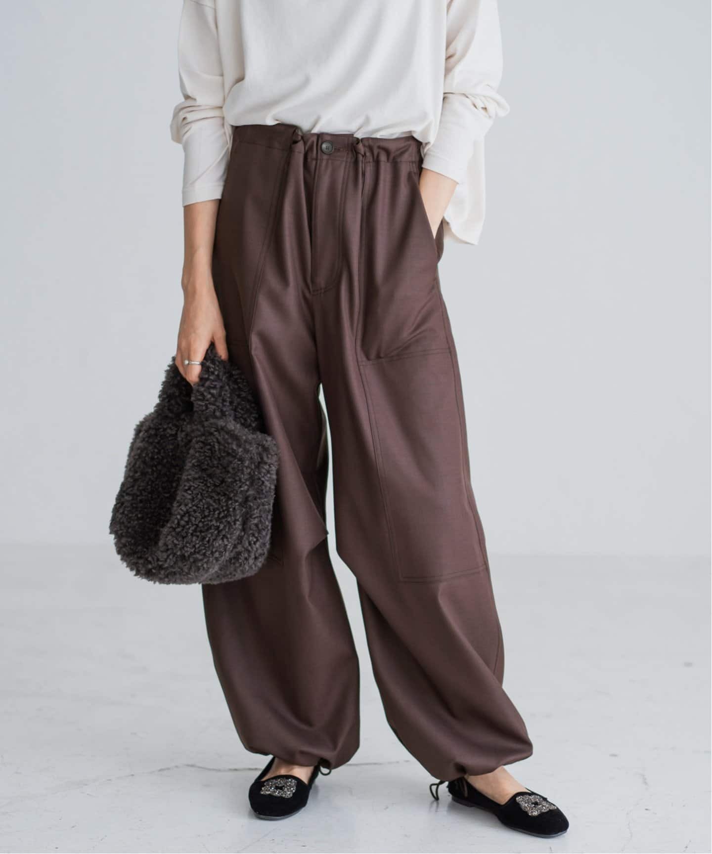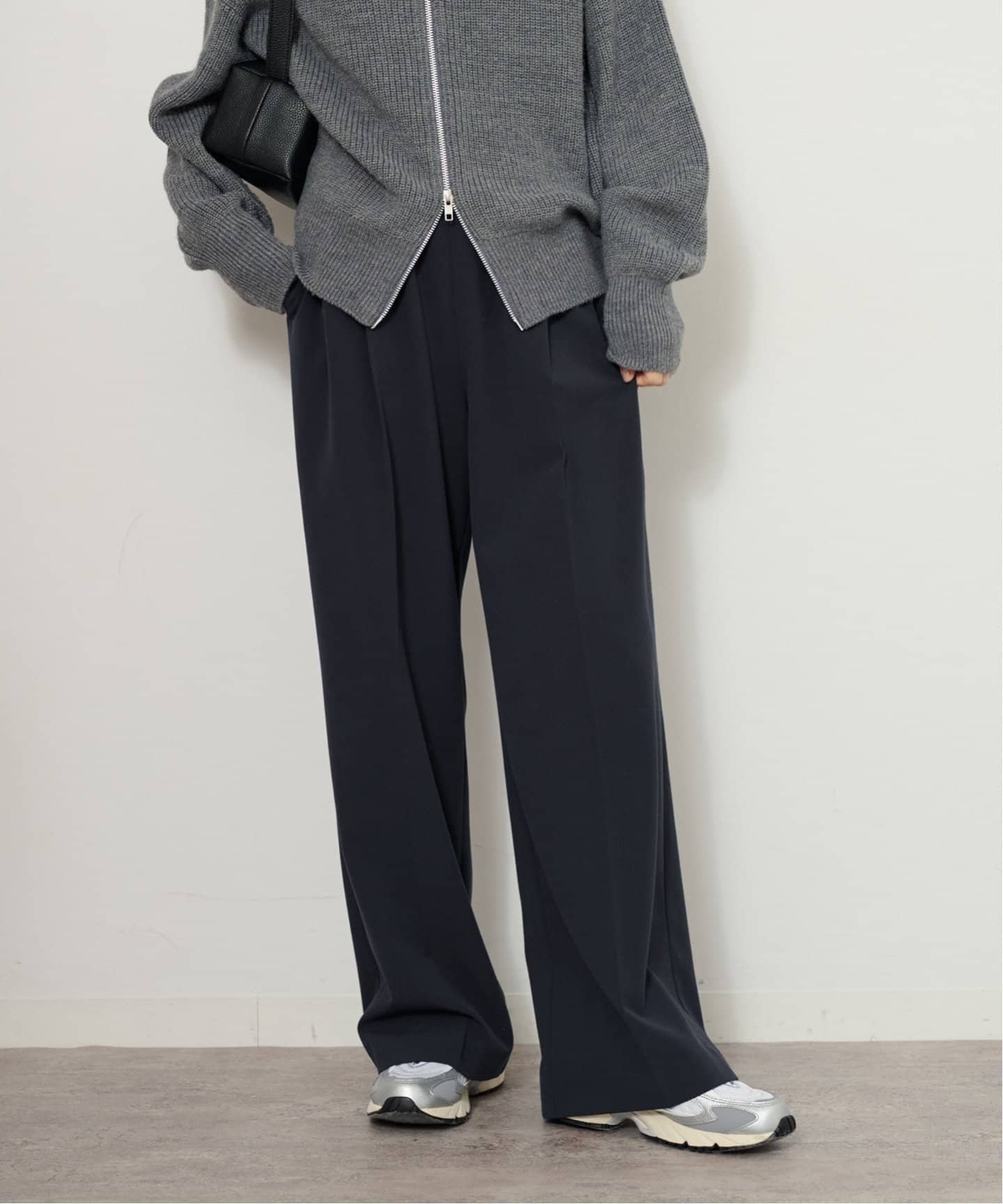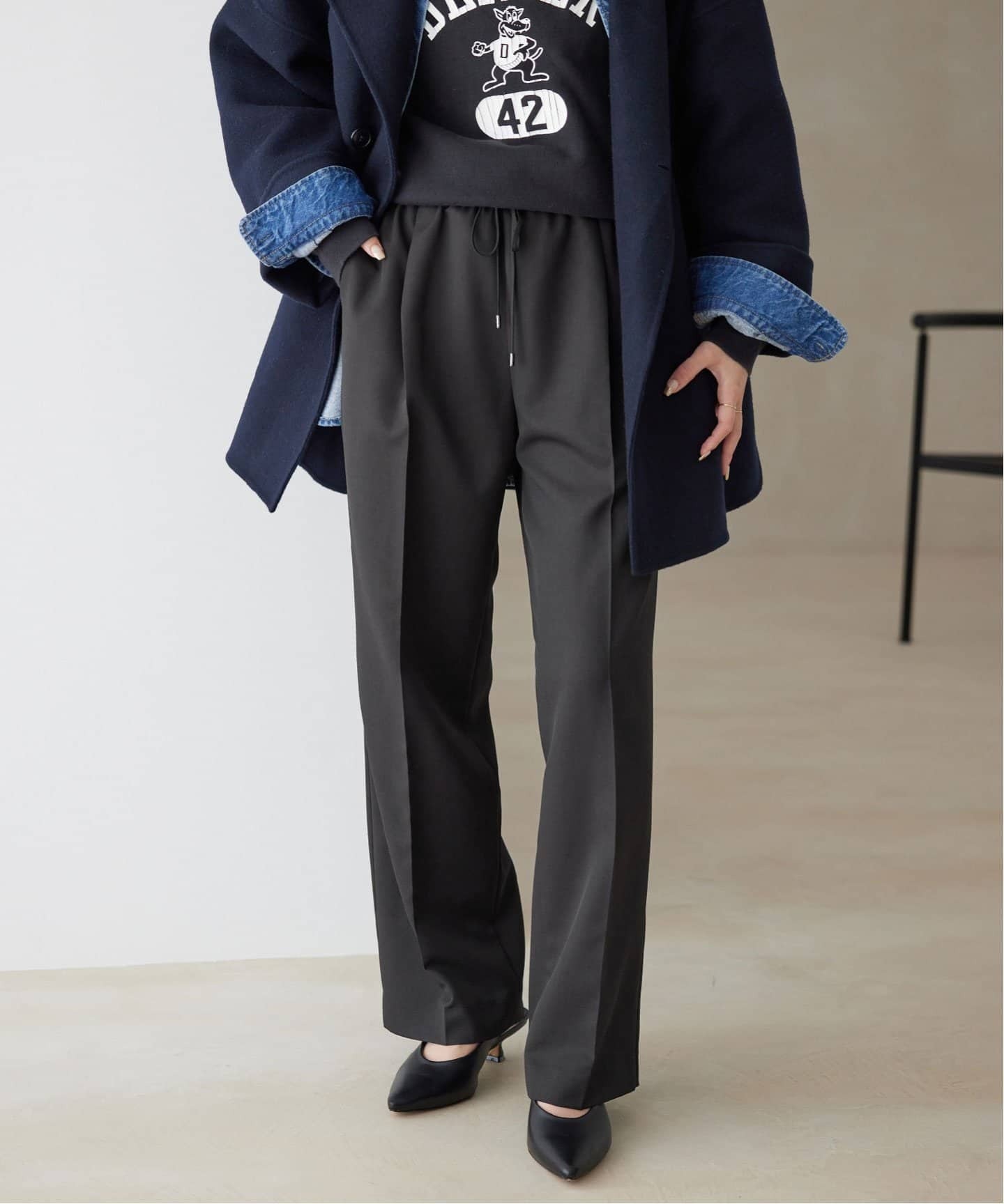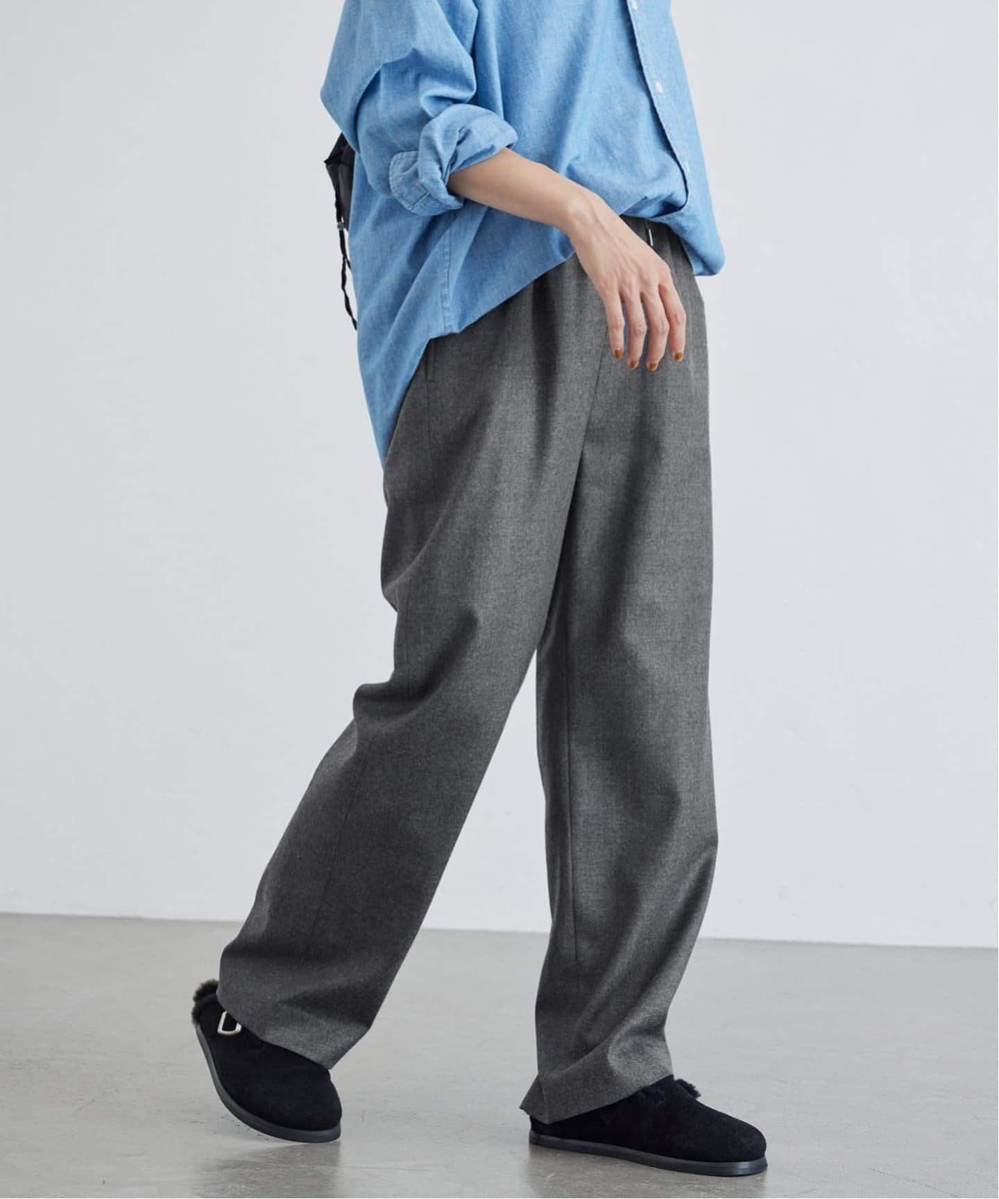 楽ちんに見えない楽ちんパンツSLOBE IENAドライクロスイージードロストテイパードはウエストゴムに見えないキレイめシルエット。イージーなのは履き心地だけでなく、ホームケアも◎。FRAMeWORKのウォッシャブルサキソニーイージーパンツは、上品な素材を使ったストレートシルエット。