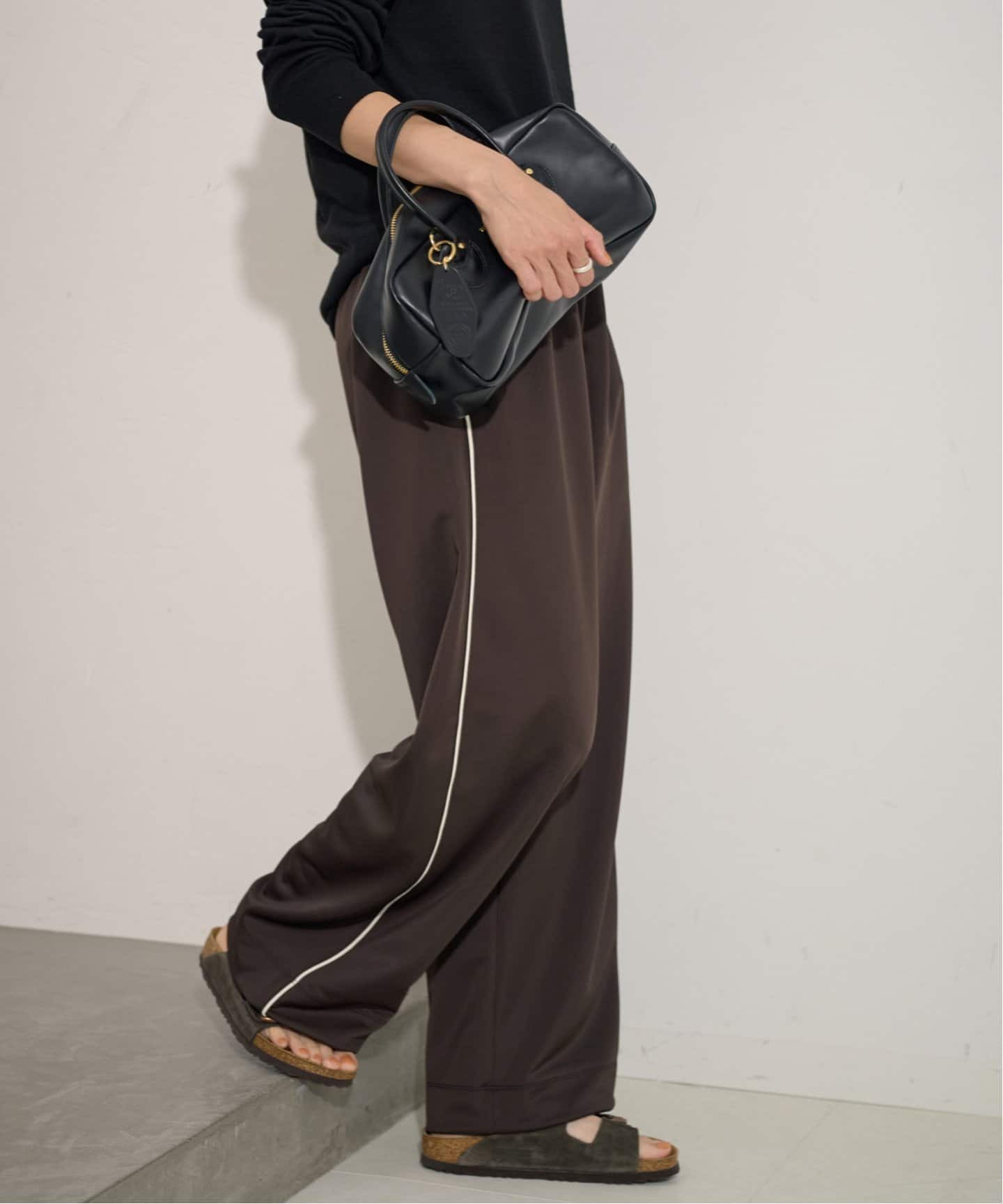 トラックパンツで更新感トレンド感をさらに足せるパンツでおすすめなのが、JOURNAL STANDARD relumeライントラックパンツのようにカジュアル見えしないキレイめトラックパンツ。シャツやニットと一緒に合わせて、トラッドコーデのハズしとして取り入れてみて。