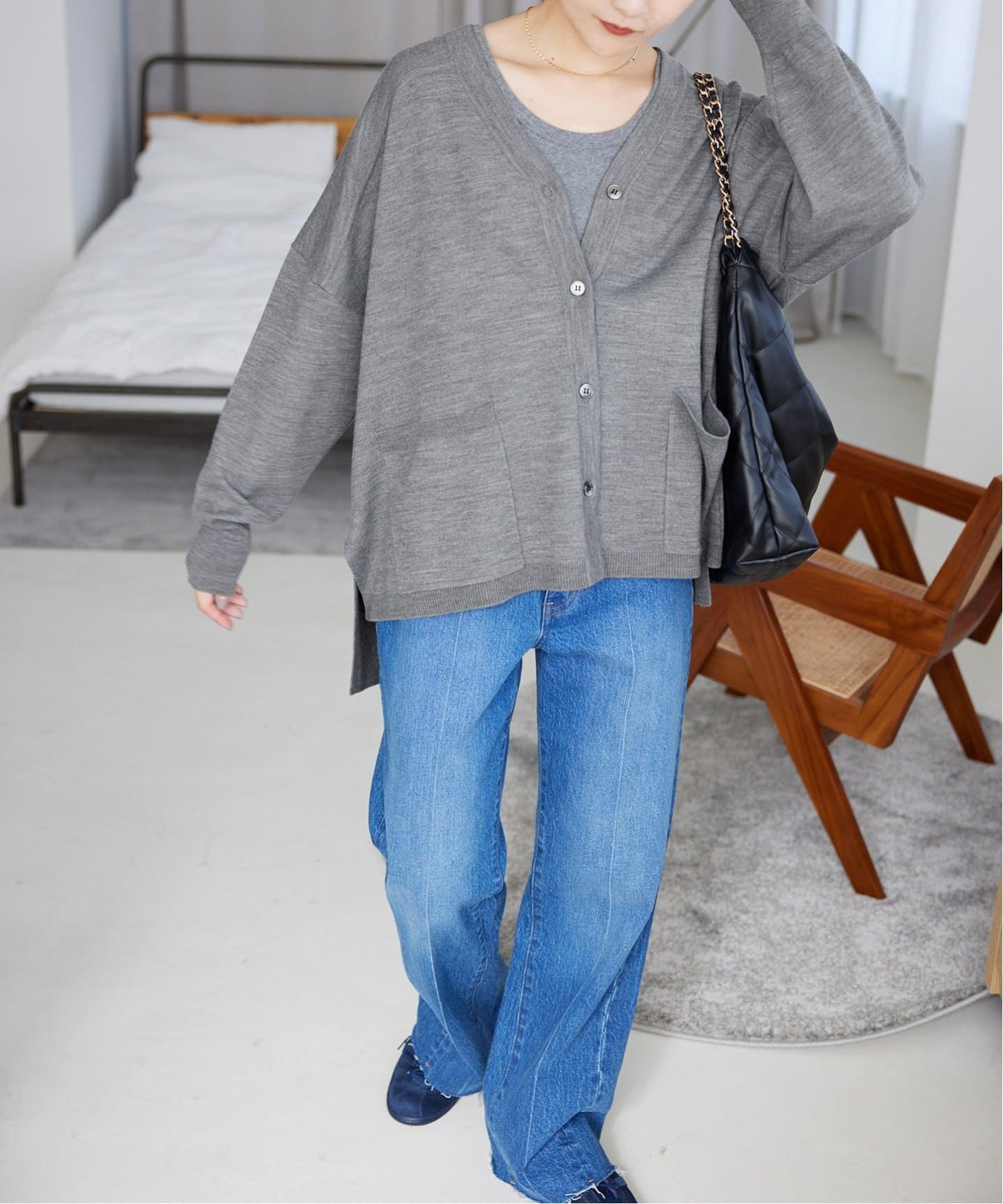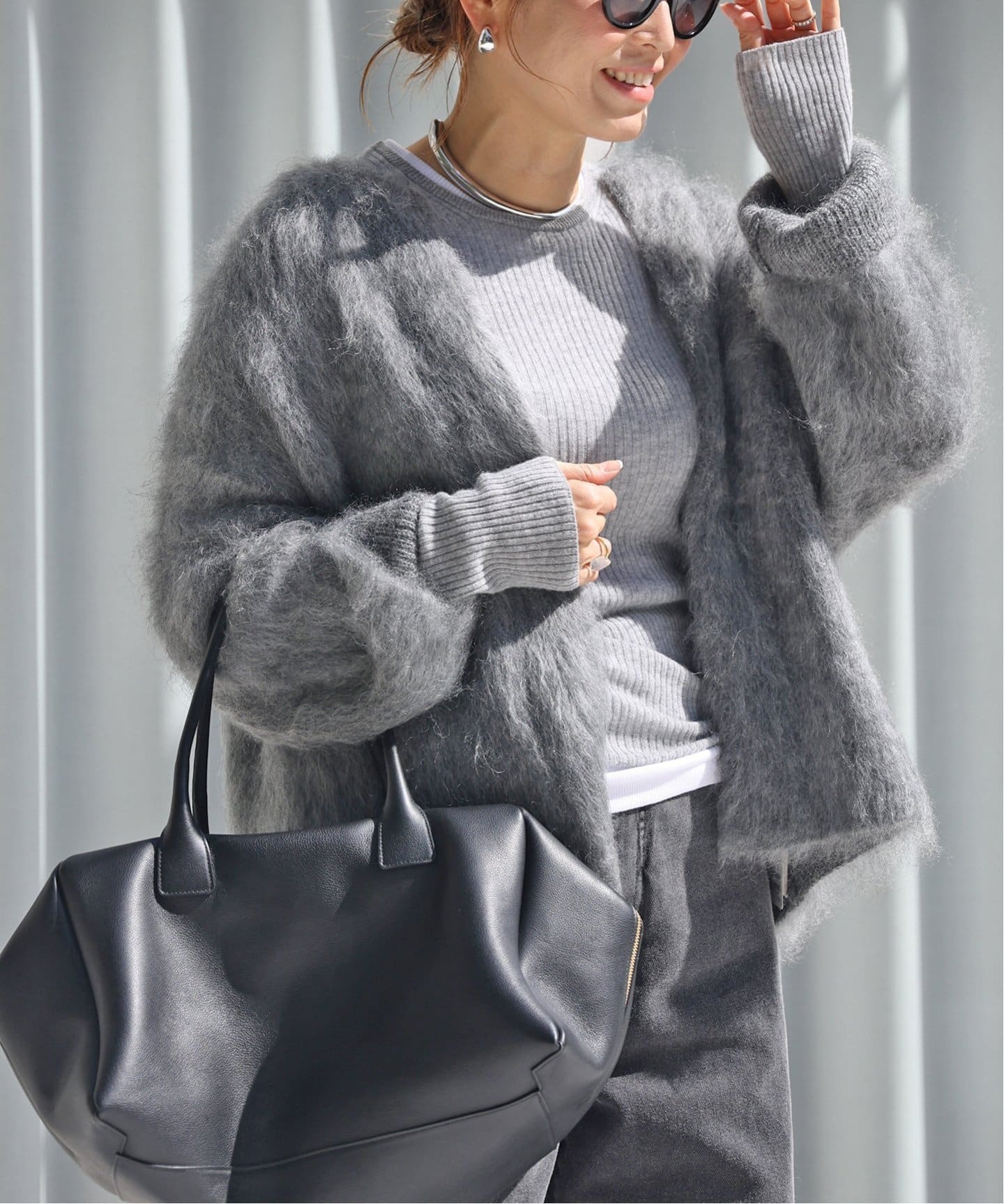 切れ味よくIENAのfluffyファー プルオーバーはレイヤードいらずでサマになるゆったり&着丈長めのシルエットや、袖口のスリットなど気の利いたディテールが◎。ふわふわした素材もトレンドの2024年秋冬、グレーをチョイスすればいっそう今っぽい雰囲気が急上昇。
