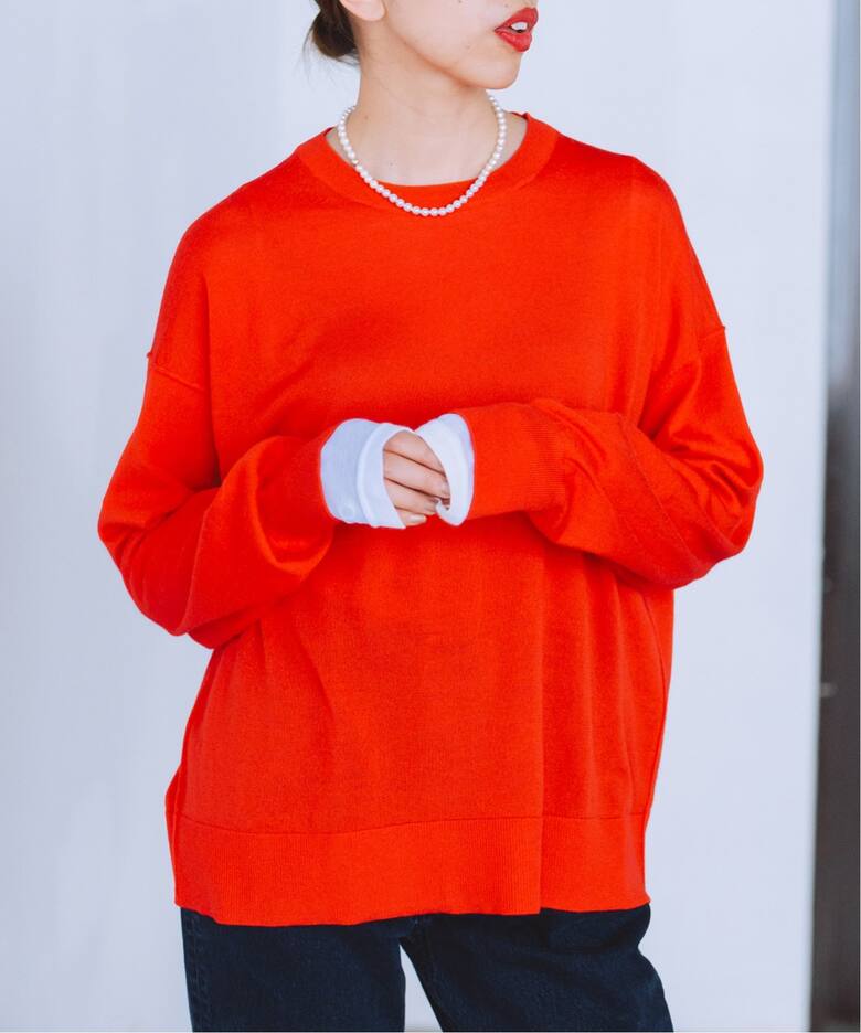ワンツーコーデの鮮度を急上昇シンプルなスタイリングに一点投入するだけで洒落るカラーニットを厳選。注目はトレンドカラーのレッド。IENAのBLACK ステイシーニットのように鮮やかな赤が女っぽくモードな印象に。シンプルなクルーネックタイプを選べば取り入れやすくておすすめ。