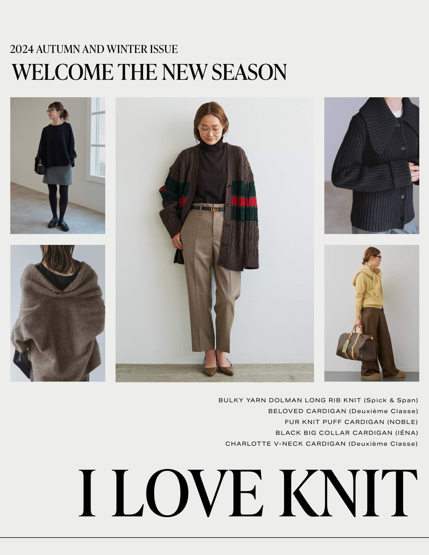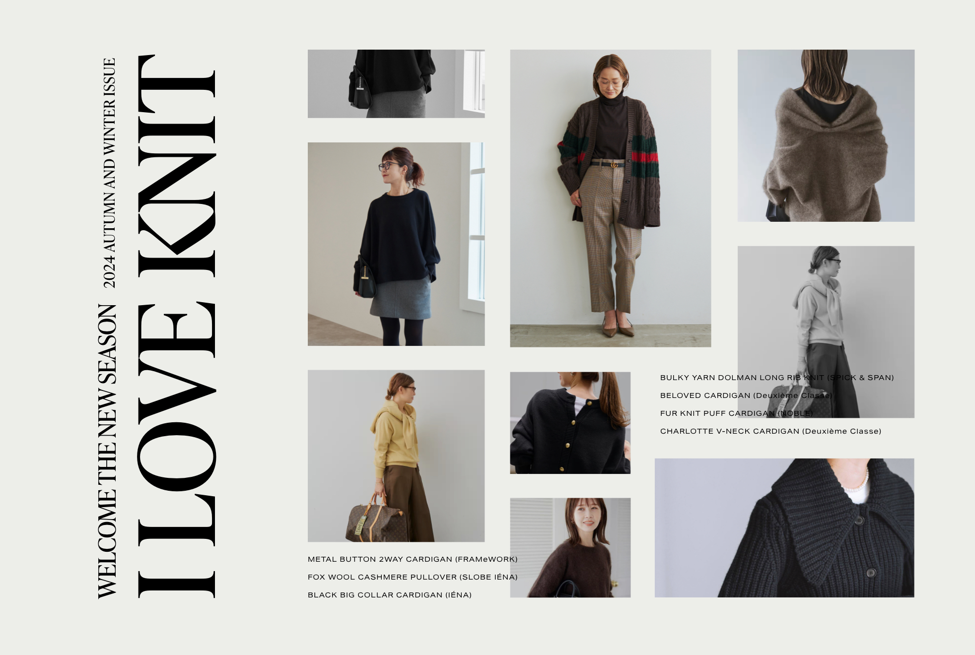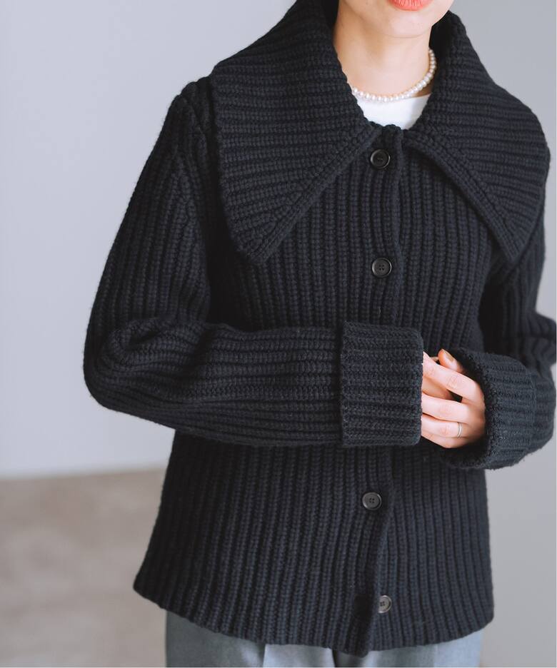 とびきりのアクセントに有効大きな襟がモードなアクセントのIENA BLACK ビッグカラーカーディガンや、ハーフジップのフロントとロゴ入りのバックスタイルでトレンド要素がたっぷり詰まったrelumeのLOGAN Knitting Mills別注ハーフジップニットプルオーバーをチェック。