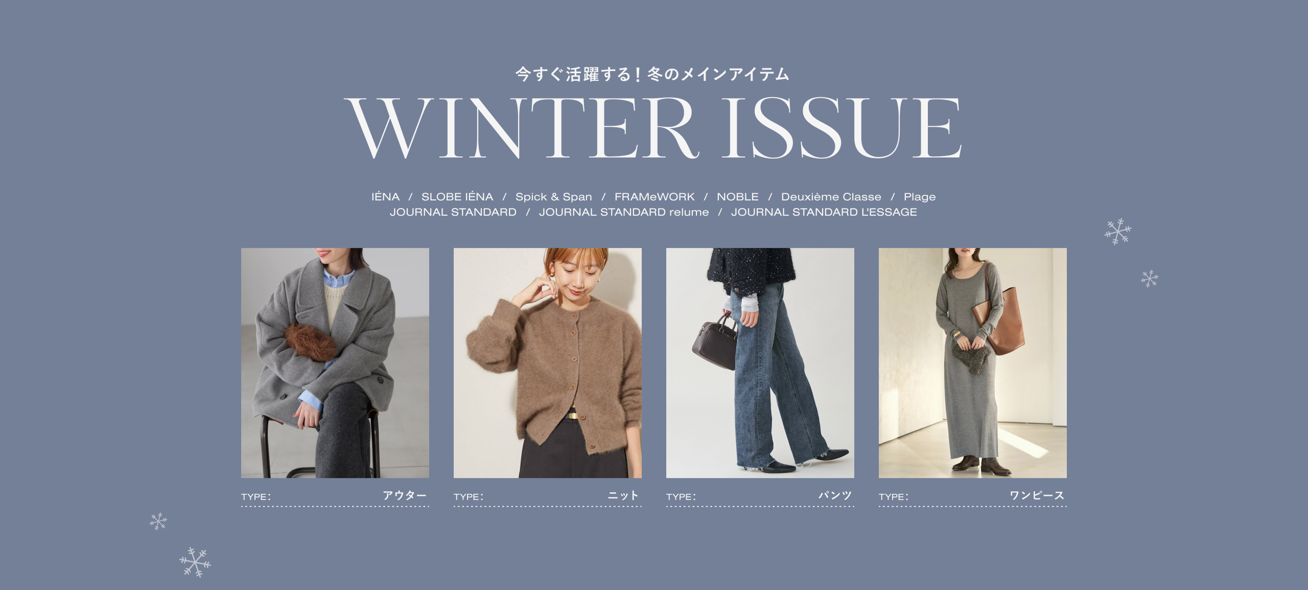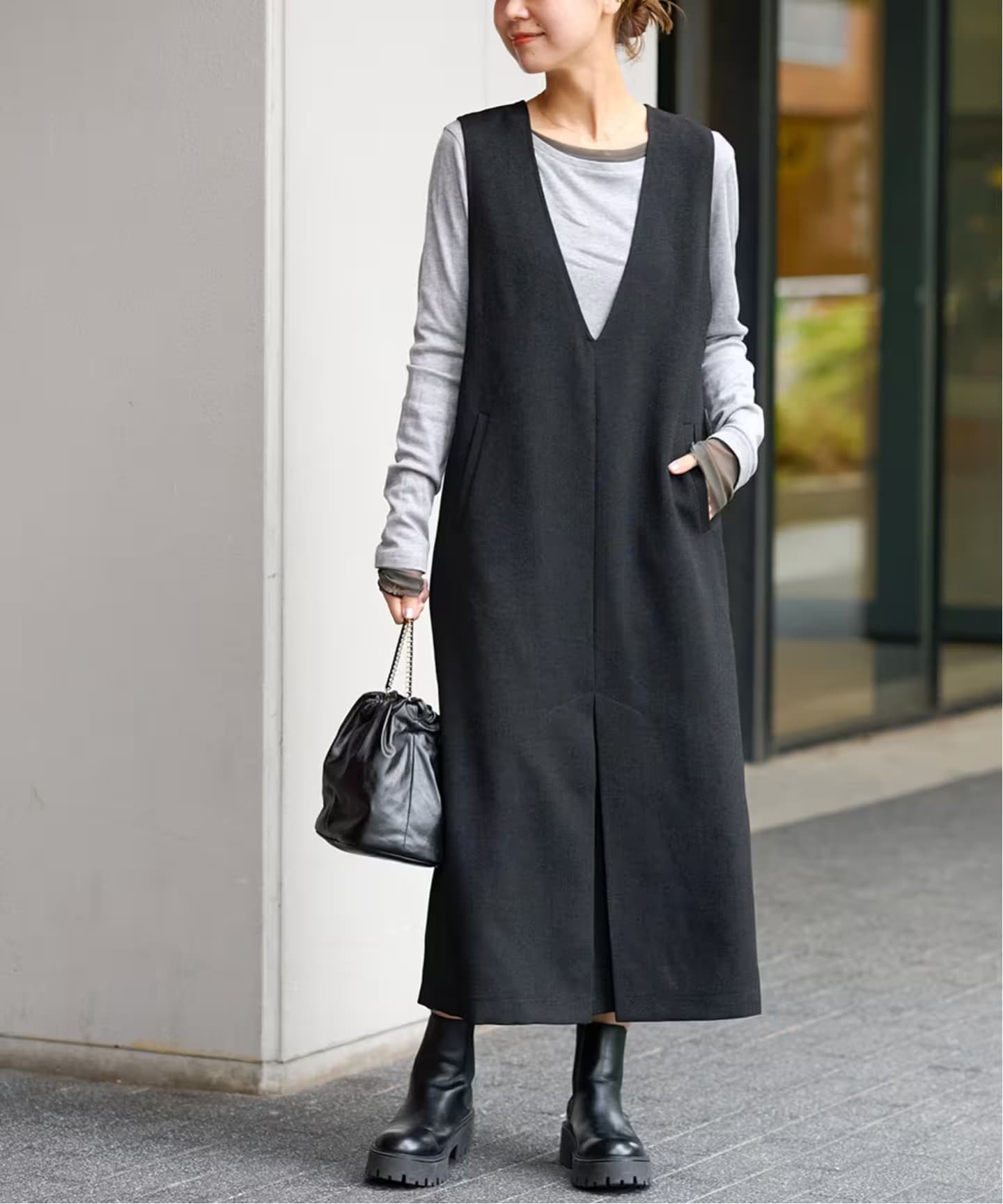 “レイヤードありき”の冬素材ワンピース1枚でコーデが決まるニットワンピースはこの冬もヘビロテ必至。さらに今年は、インナー次第で着こなしのバリエーションが広がるデザインが豊作。relumeボックスタックジャンパースカートやJOURNAL STANDARDクリアツイルディープネックワンピースに注目。