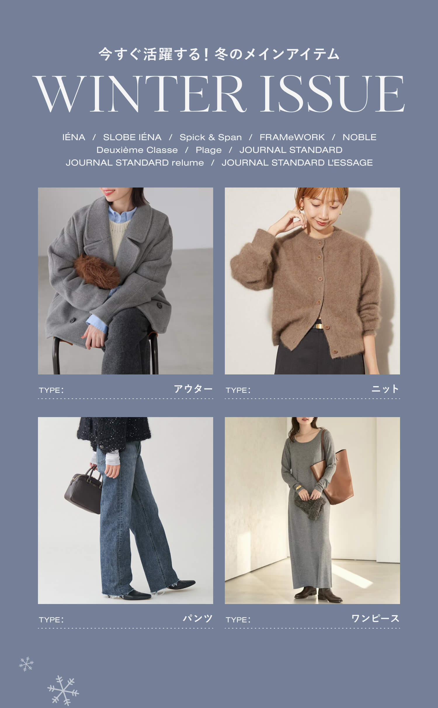 コーデのメインになるアウター、ニット、