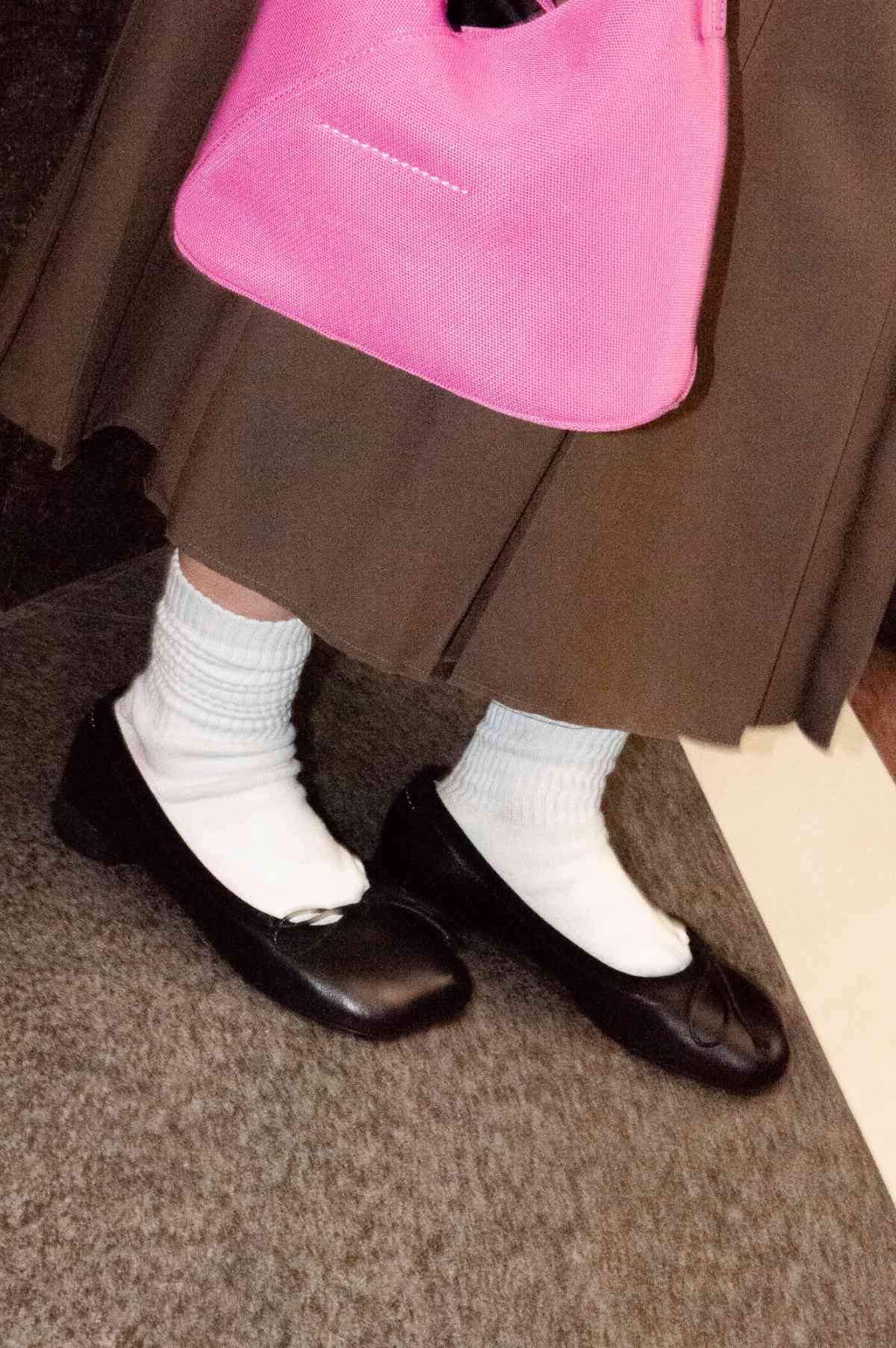 ー今期のムード感あるMM6のフラットなシューズをポイントに女性らしさを加えたシンプルな綺麗めコーデ。