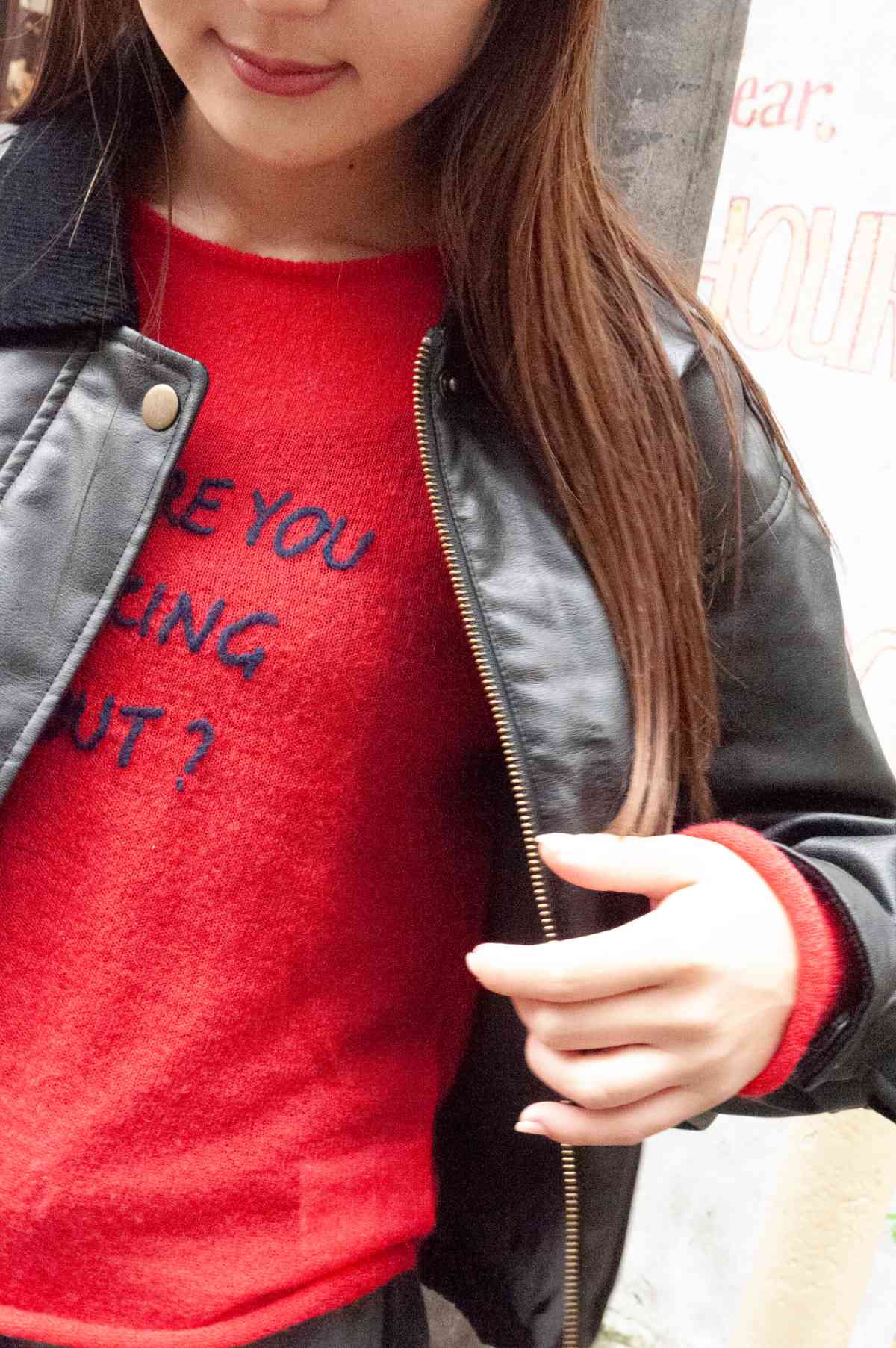 ー落ち着きがちな秋冬のスタイリングを個性的なcrocsで。トップスは足元に負けないカラフル&ふわふわなニット。パンツは他アイテムを引き立てられるシンプルなものをチョイス。バッグは個性派スタイルを大人っぽく魅せられるMM6に。Style 05