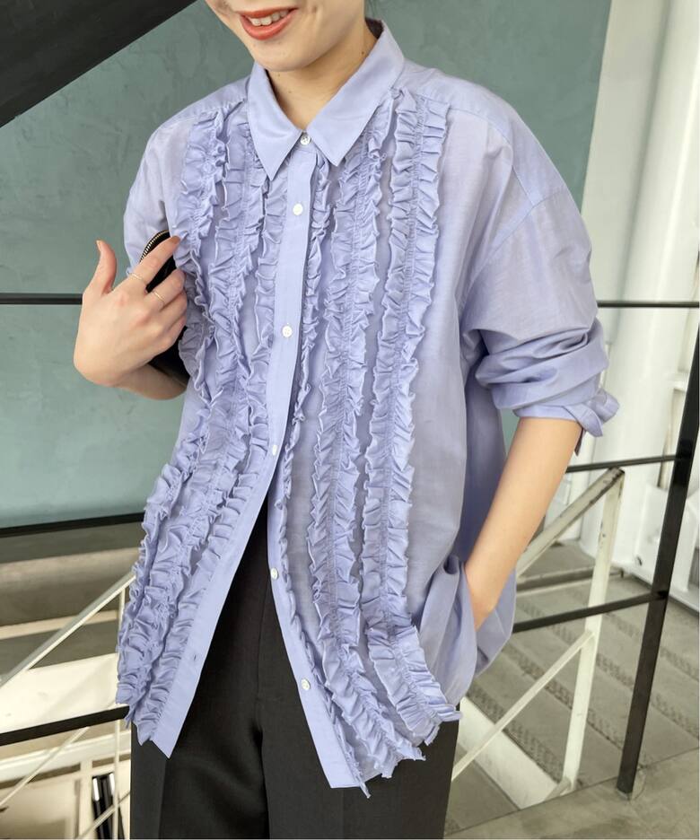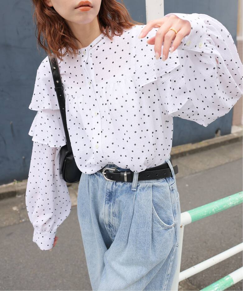 主役にもなりレイヤードも楽しめるトップスJOURNAL STANDARDドットショルダーラッフルブラウスは、ポコポコした表面や襟元のハシゴレースがポイント。relumeは、抜け感のあるニュアンスが春らしいテープヤーンニュアンスプルオーバーやオフショルロゴスウェットをレコメンド。