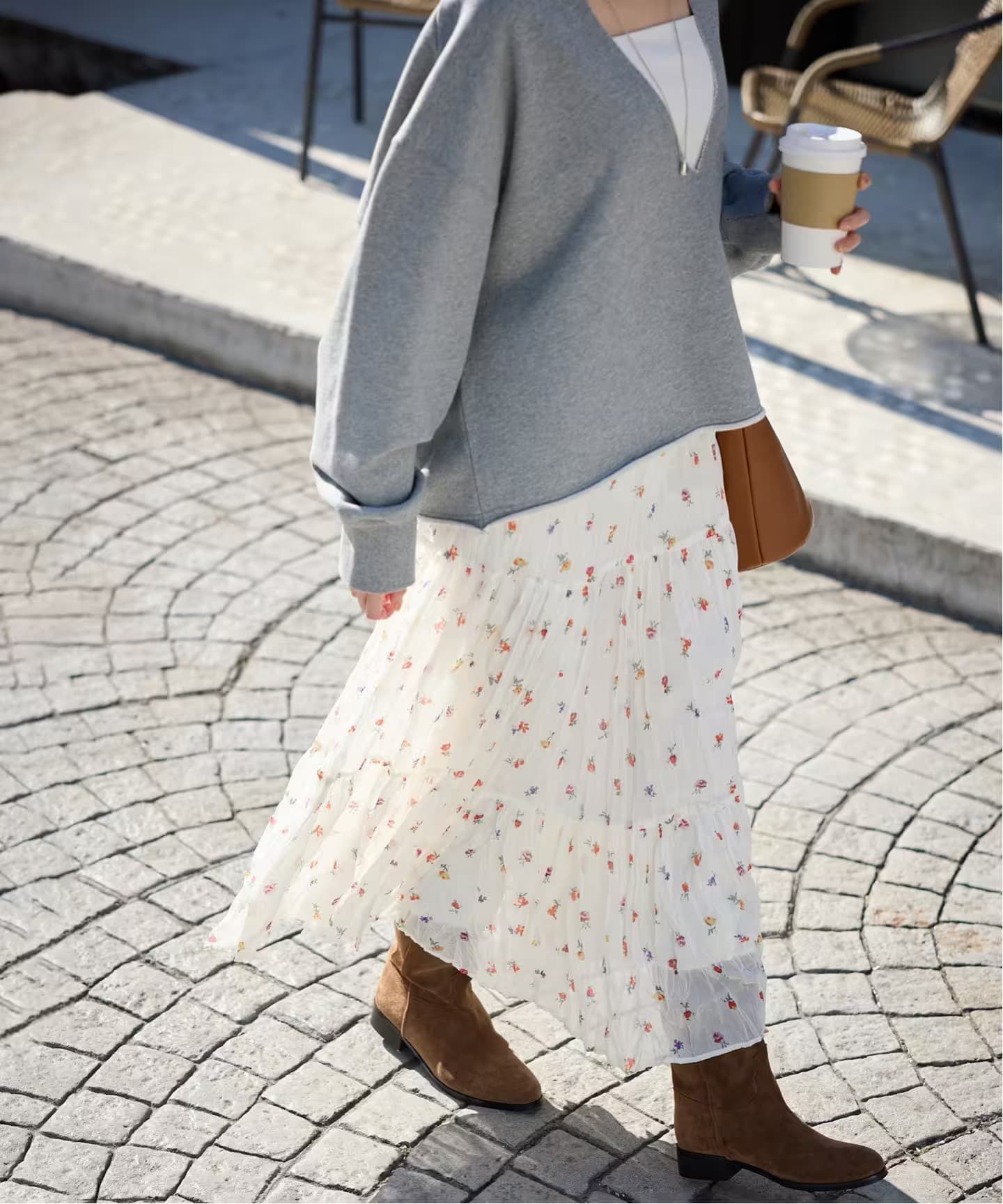可憐なフラワーアイテムでコーデに新風を一気に春ムードが楽しめる花柄アイテムに注目。IENAの楊柳フリルピンタックブラウスはモノトーンだから甘すぎず大人っぽい印象に。SLOBE IENAのFLOWERティアード スカートは、ヴィンテージライクな花柄がふわりと揺れるオールシーズン対応アイテム。