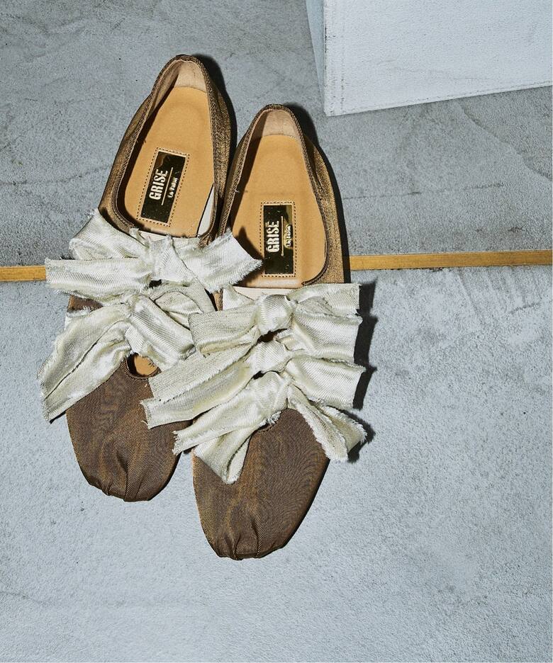 リボンモチーフアイテムで旬な甘さを投入リボンアイテムは大人コーデにちょっぴり甘いアクセントを刺せる注目トレンド。LE TALONは、ヴィンテージライクなGRISEサテンリボンバレリーナシューズ。La Totaliteは、手元に大人可愛いリボンをあしらったバリエーションリボンカフスシャツ。