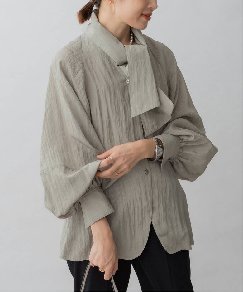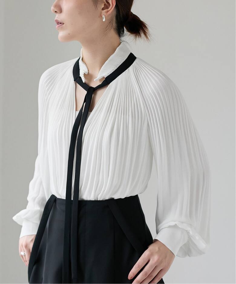 繊細に寄せたフリルの衿やセンシュアルな透け感のバルーンスリーブがワンランク上のスタイルを演出するL’UNEのプリーツブラウス。手持ちのワンピースやジャケットにプラスするだけでぐっと特別感が増すシルクオーガンジーコサージュも◎。