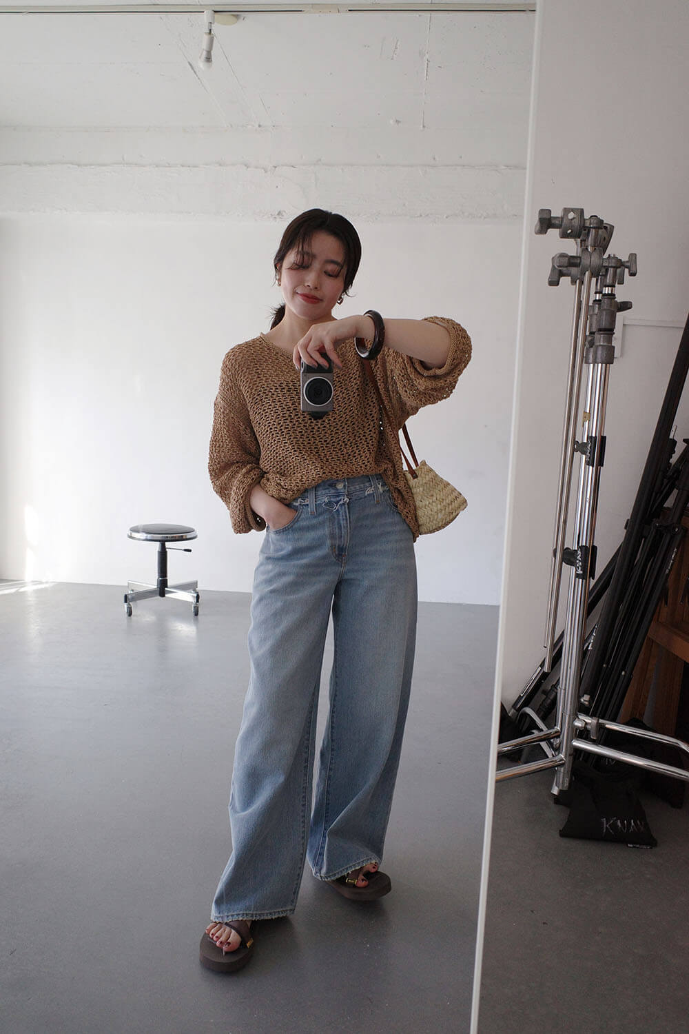 オーバーサイズのバギーカット、ワイドなストレートレッグが特徴。
