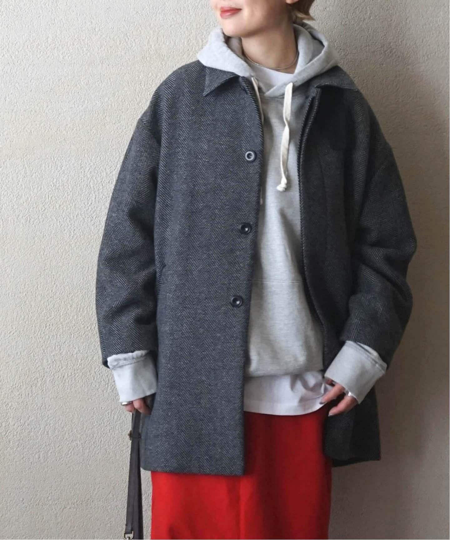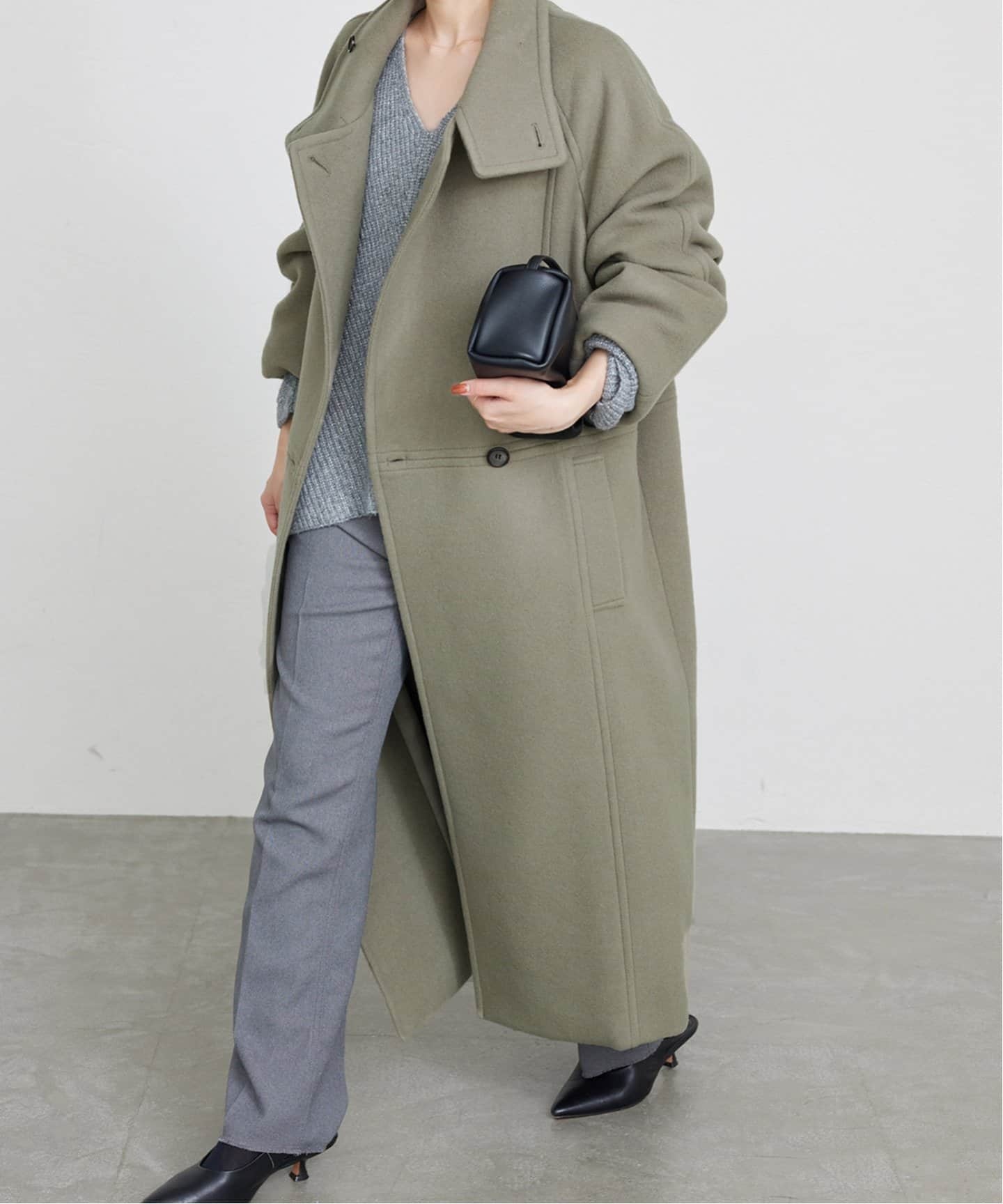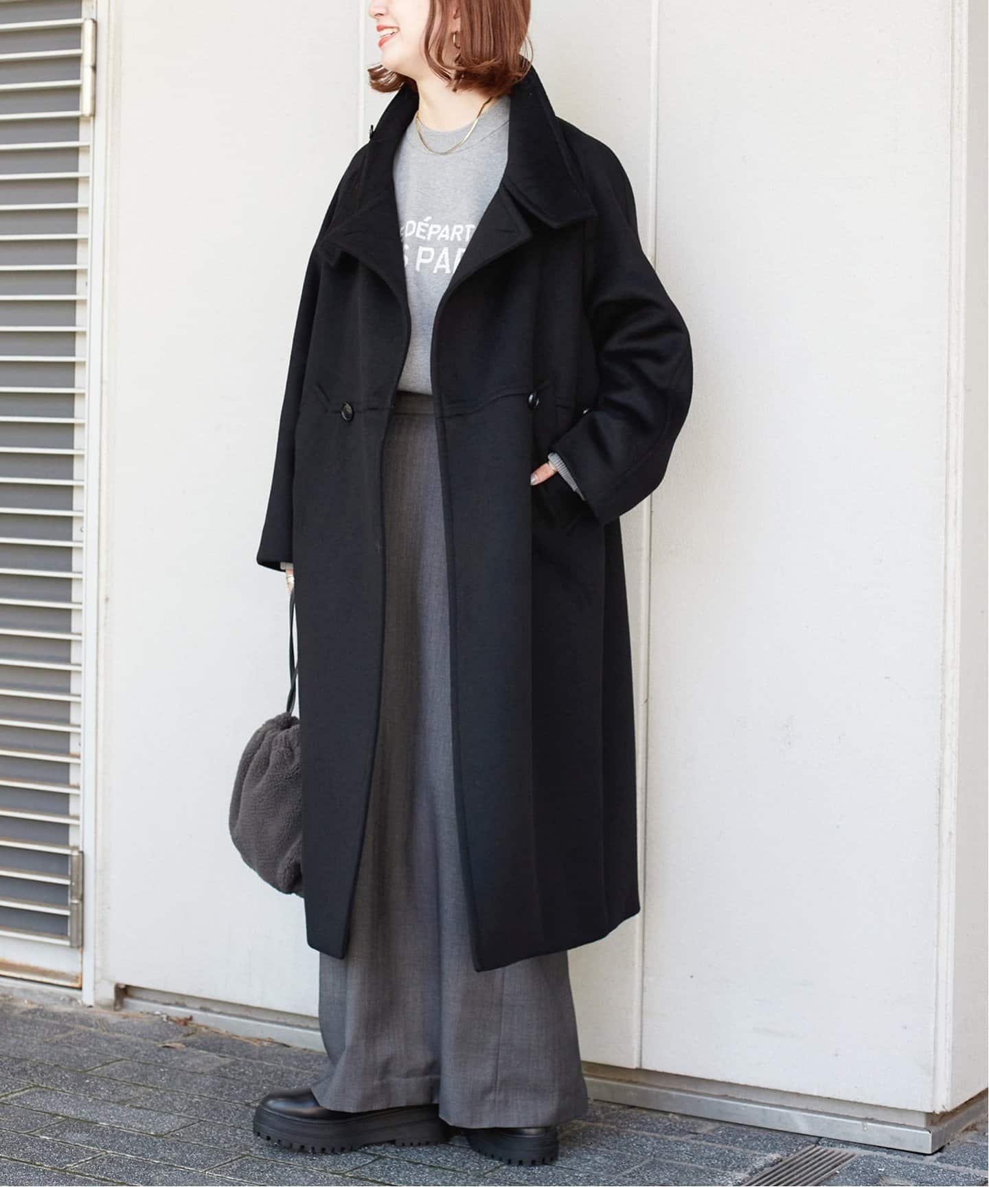 スタンドカラーコートで