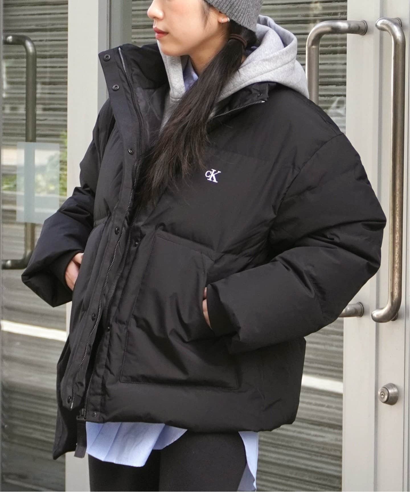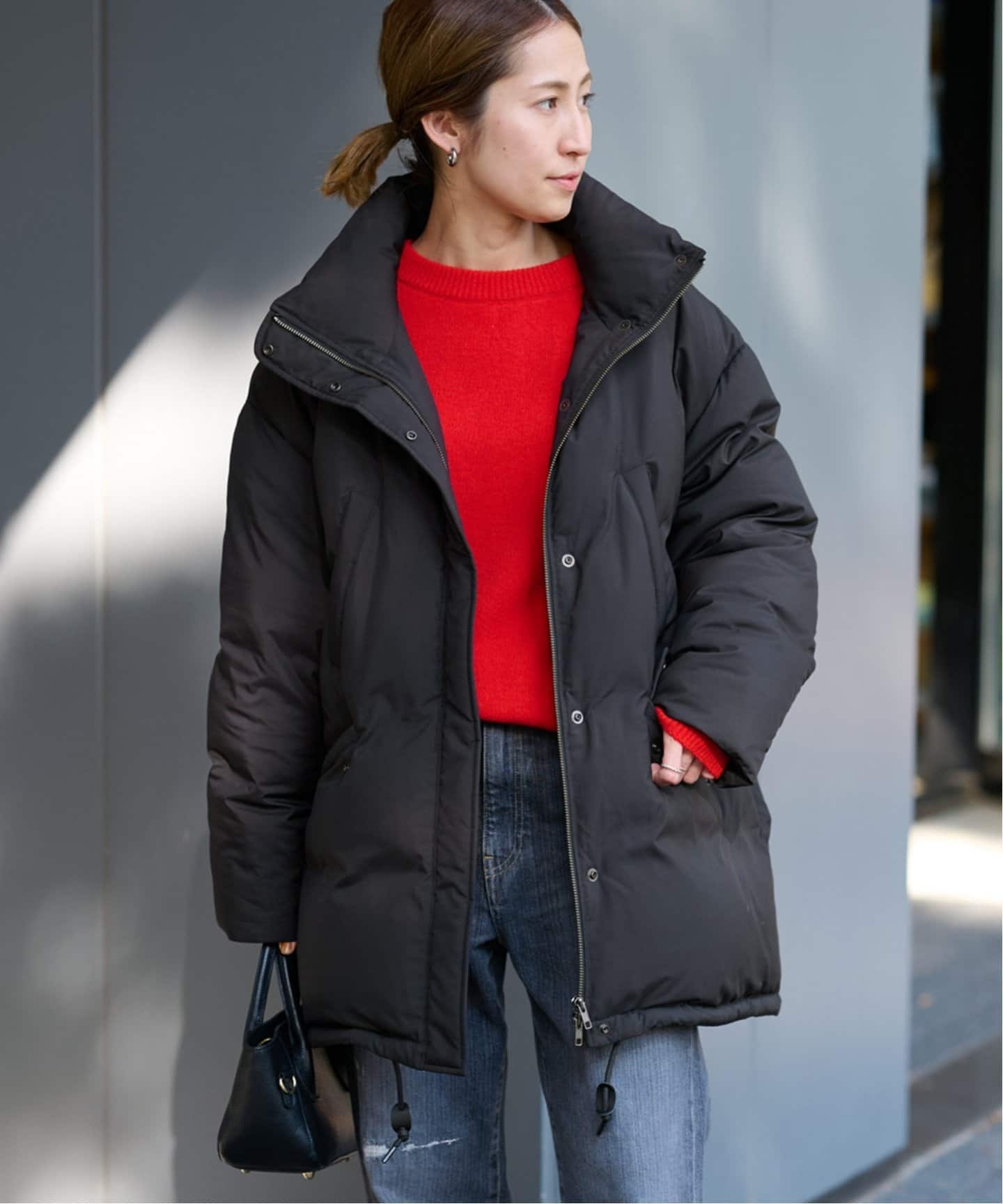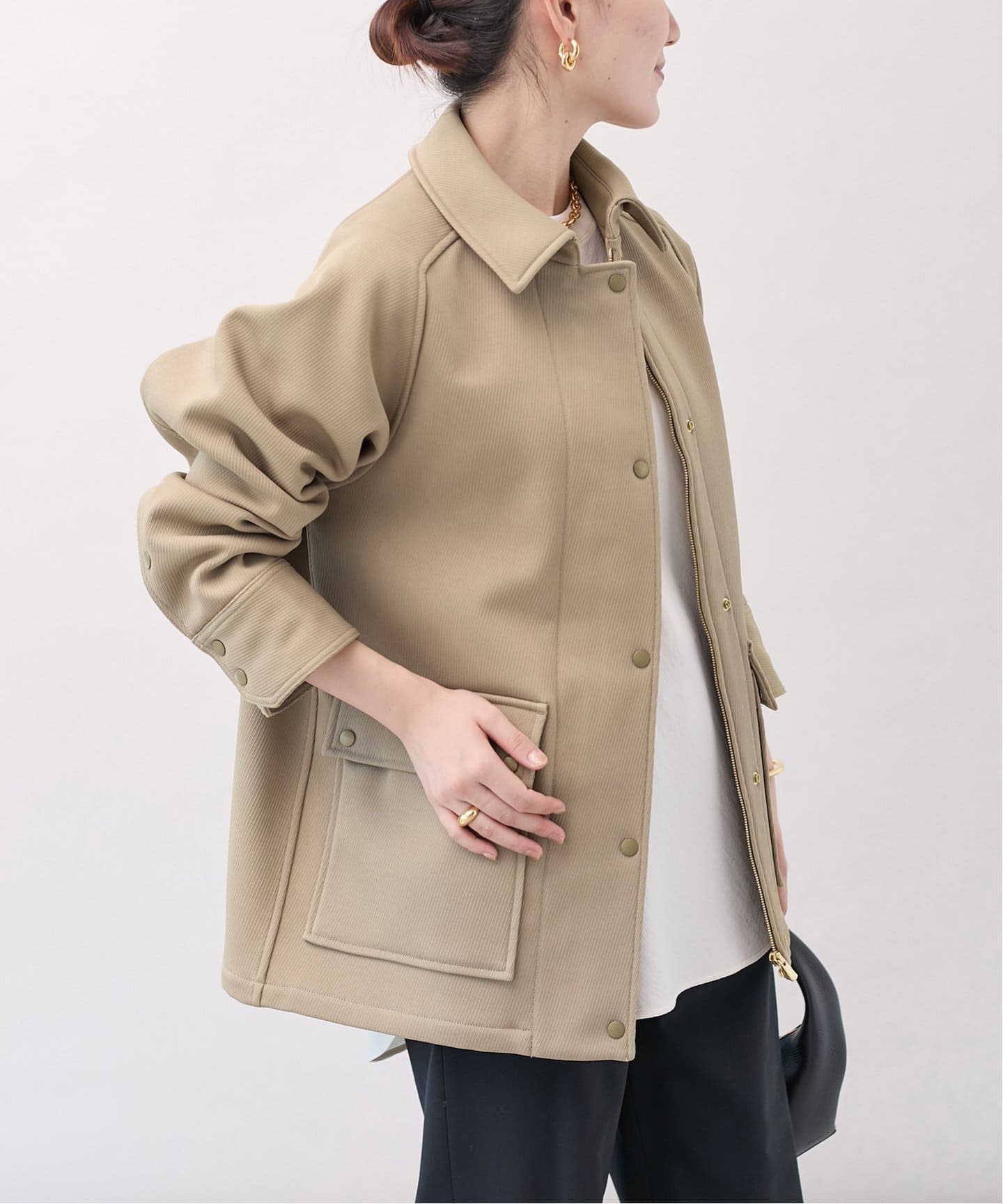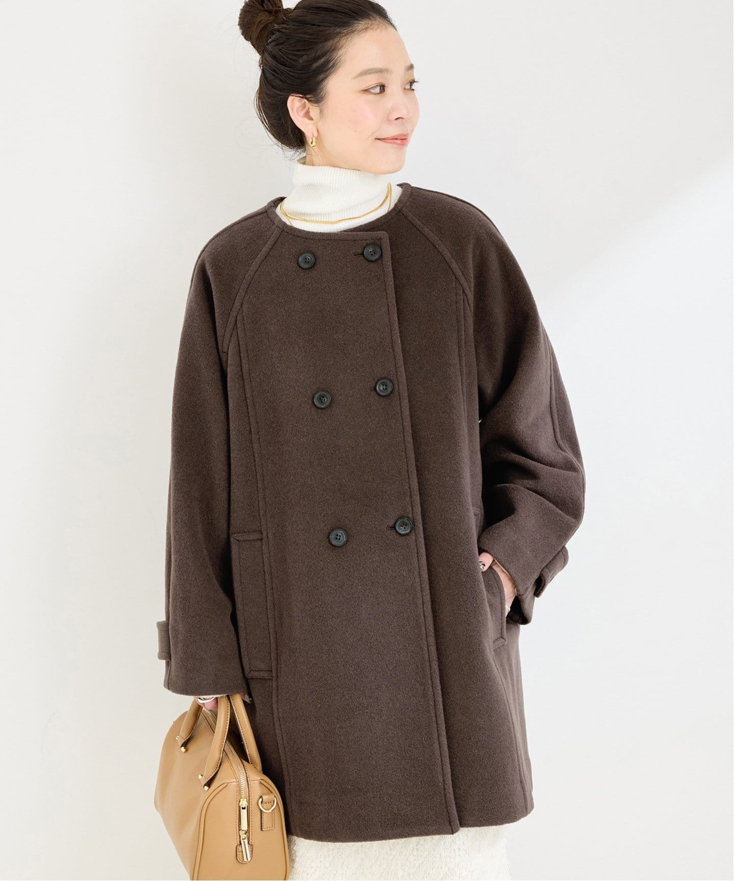 スタンドカラーコートで