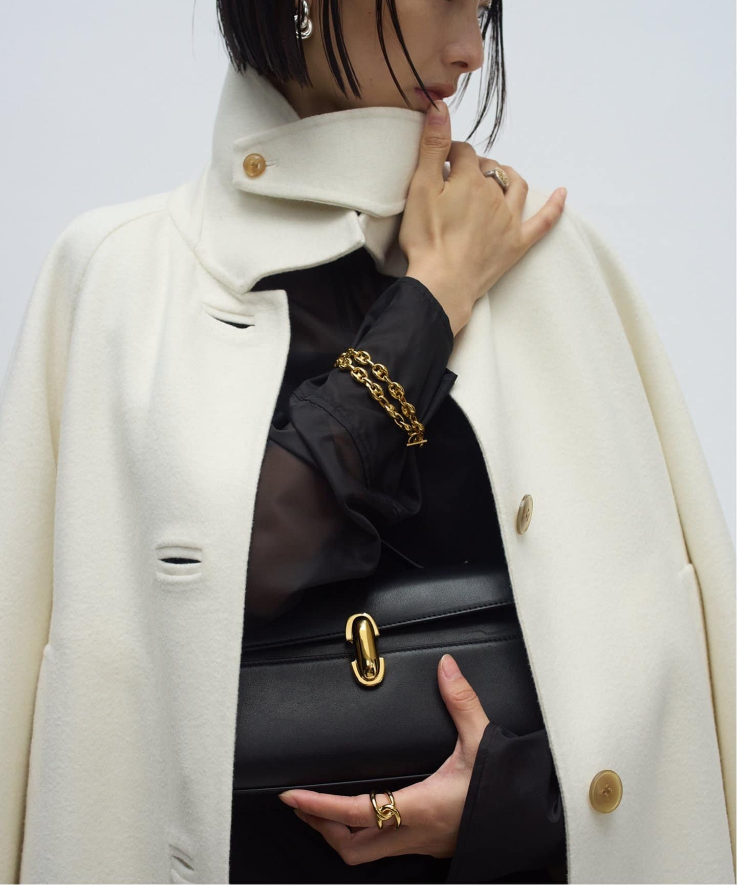 嬉しいプライスにSLOBE IENAは、一点投入で今年らしいスタイルバランスが叶うショートPコート。マニッシュなこなれ感漂うSpick & SpanのWスライバーチェックハーフコートは、重厚感ある見た目に対して軽い着心地にアップデート。スタンドカラーにもアレンジ可能。