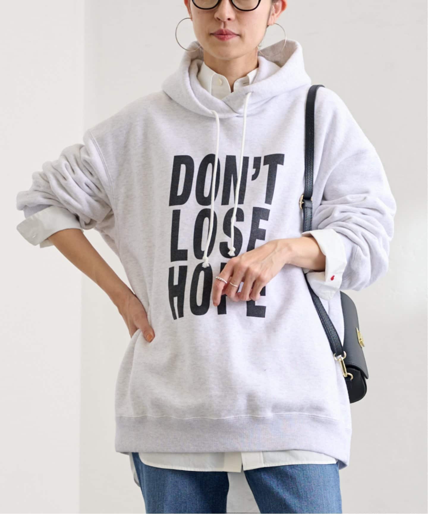 ロゴトップスでインパクトと洒落感を盛り付けベーシックで着やすいラフなクルーネックトップスにインパクトたっぷりのロゴをプリントしたLOGO Tシャツ。真冬はカーディガンやボアベストなどとレイヤードして、春は1枚で。裏毛HOODIEはホワイトのカラーにのみアイキャッチなロゴをプラス。