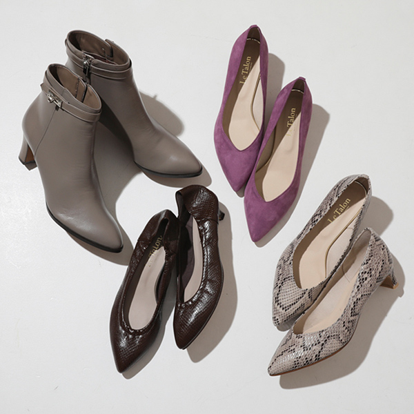 秋冬大活躍のブーティは、表革で高見えする素材のアイテムを選んでみて。洋服にボリュームが出がちな秋冬こそ足元はシャープなポインテッドトゥパンプスでシンプルにまとめるスタイルがベストバランス。得意のくすみピンクやベージュなら、ムードのある足元を演出できそう。