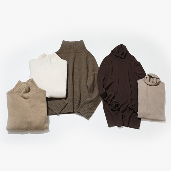 カシミアやハイゲージなどクラス感のある素材がボディラインの美しさを引き立てるのにぴったりです。