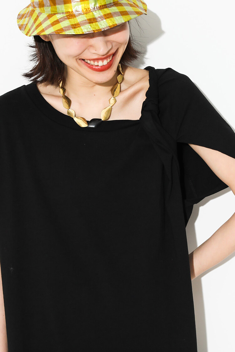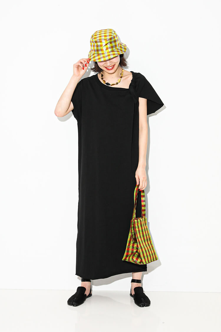 透け感のない厚めの生地を用い、体のラインを拾わないゆるめのシルエット。レイヤードなしでも着こなせるマキシ丈に仕立てました。アシンメトリーなスリーブデザインが、立体感のある表情に。シンプルなカットソーワンピは小物で遊んで!