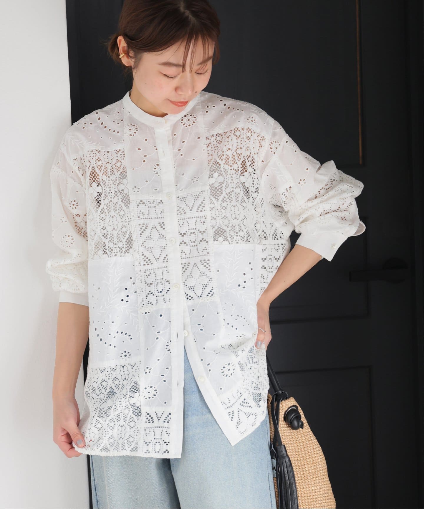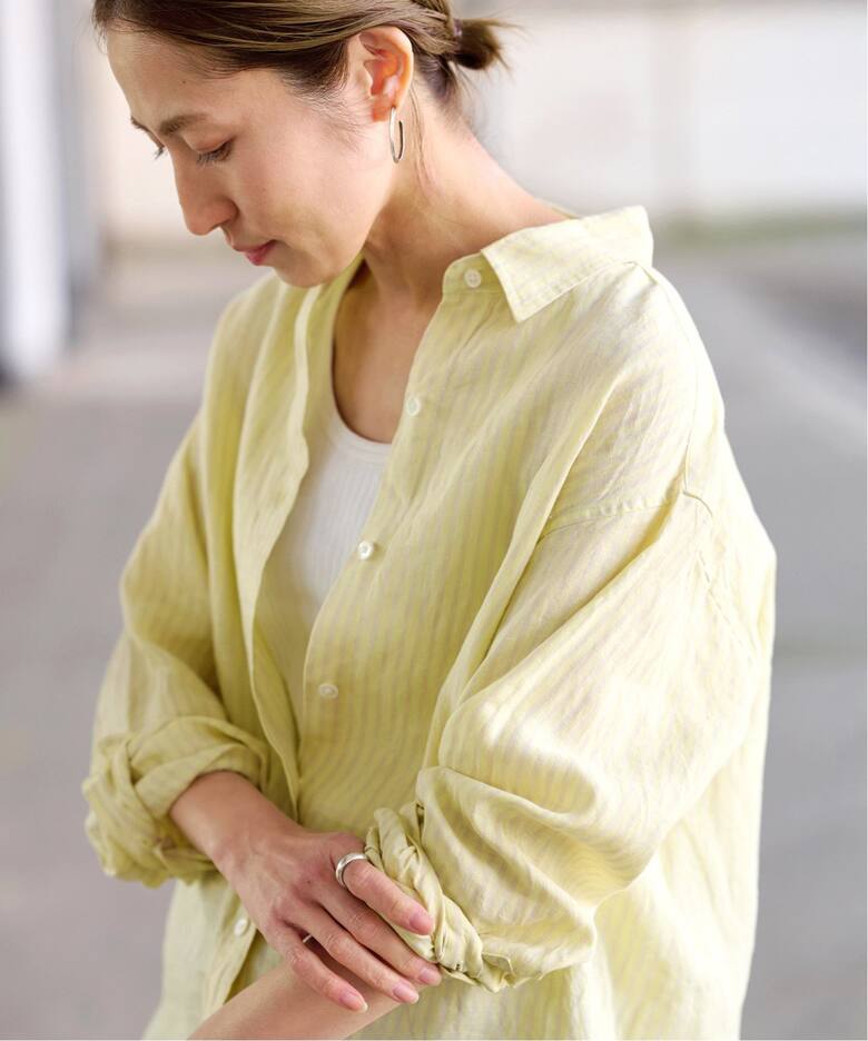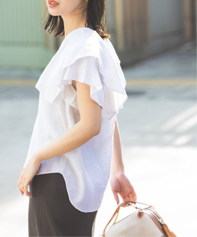 主役級デザインシャツPlageは、トラッドなオックスフォードシャツをポンチョシルエットにモディファイ。体が泳ぐオーバーサイズがこなれ感のある着こなしに。NOBLEファジーリネンスクエアケープブラウスは、コンパクトなフィットでスッキリと大人っぽくフリルを満喫。