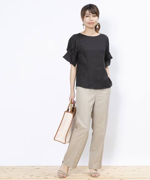 二の腕をふんわり優しくカバーしてスタイルアップも◎。