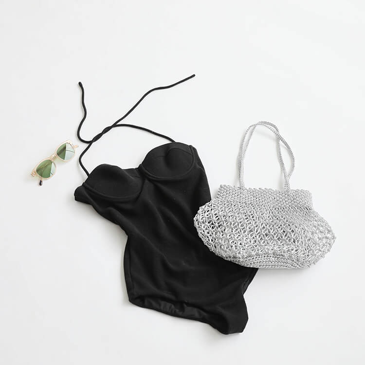 - クロスしたデザインが目を引き、着るだけで存在感のあるアイテム。