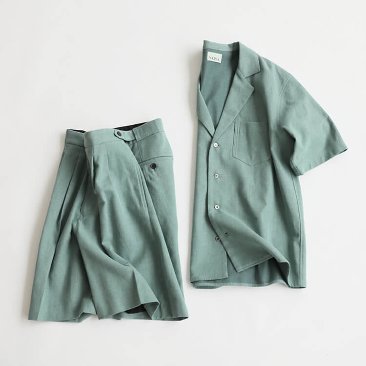 - 淡いグリーンの色味とショートパンツのセットアップが今年らしくて◎夏の大活躍アイテムたち。