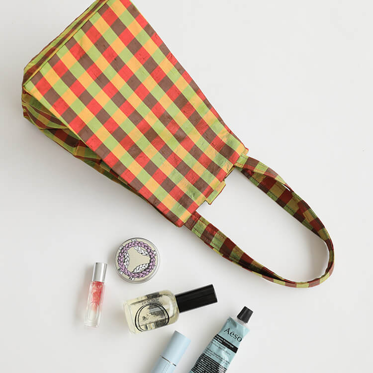 - 光沢のあるギンガムチェック柄に一目ぼれ。手を洗う回数が増えたのでハンドケアのアイテムも持ち歩くように。
