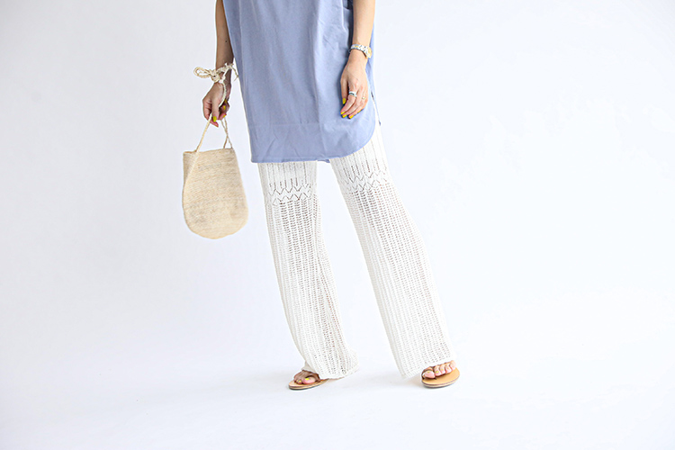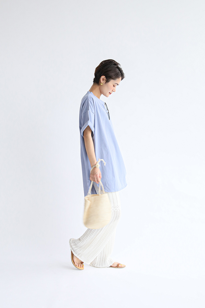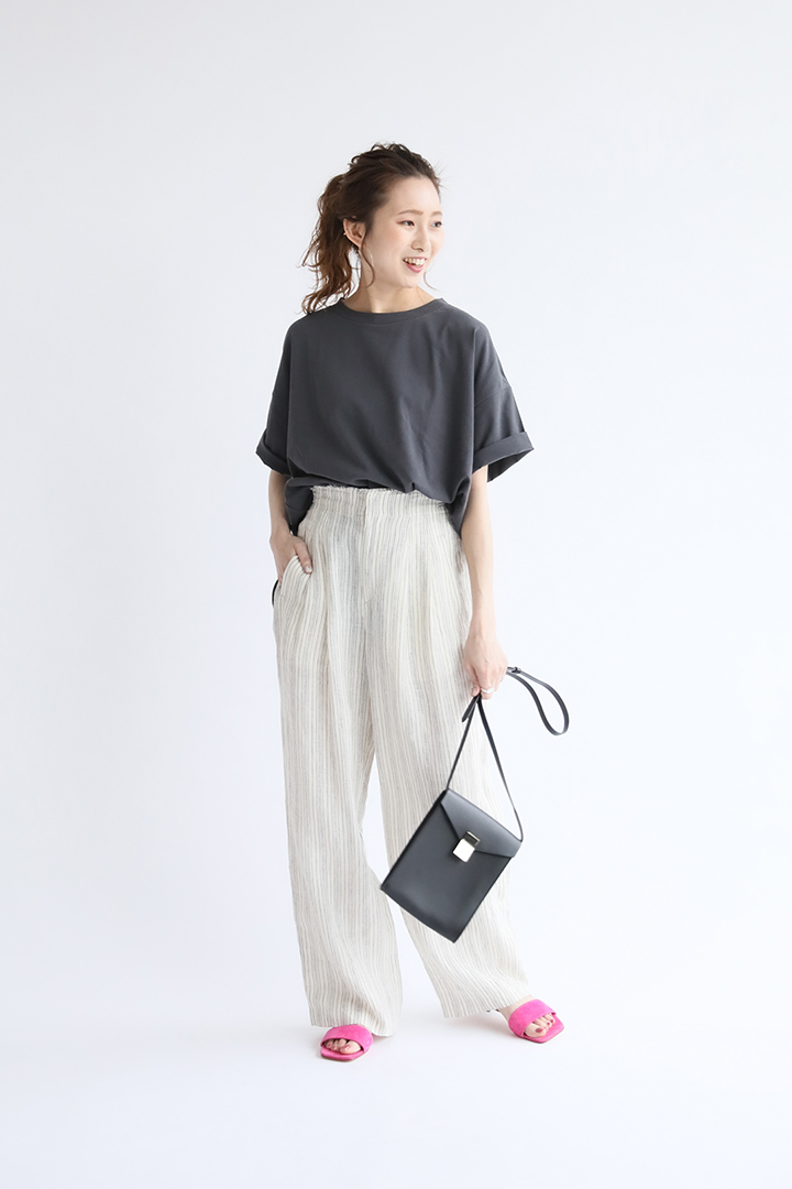 - BIG Tはリラックスしたゆったりシルエットで着丈も長いため、体型が出やすいニットパンツも気負わずチャレンジしやすくて◎。