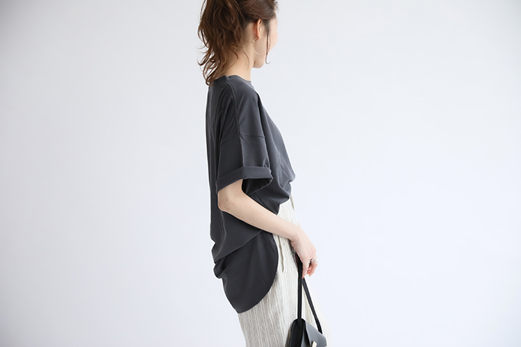 インしてもアウトにしてもサマになるラウンドヘムラインのシルエットだから、