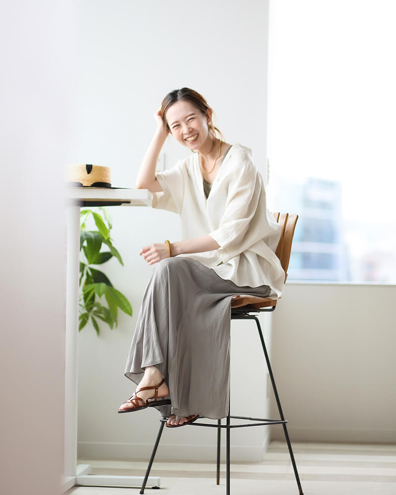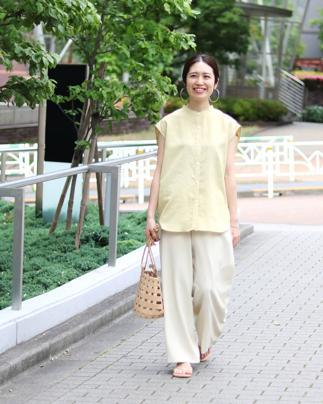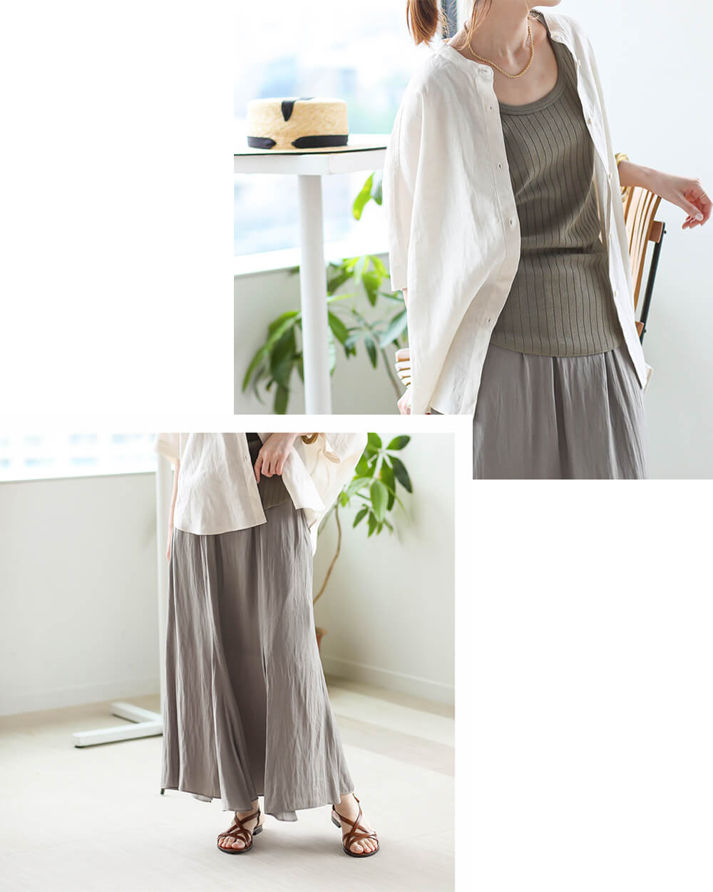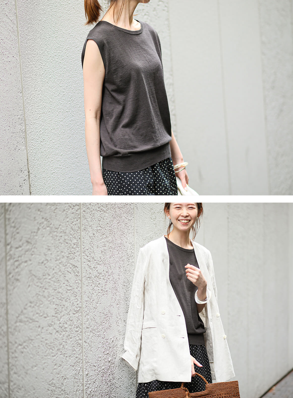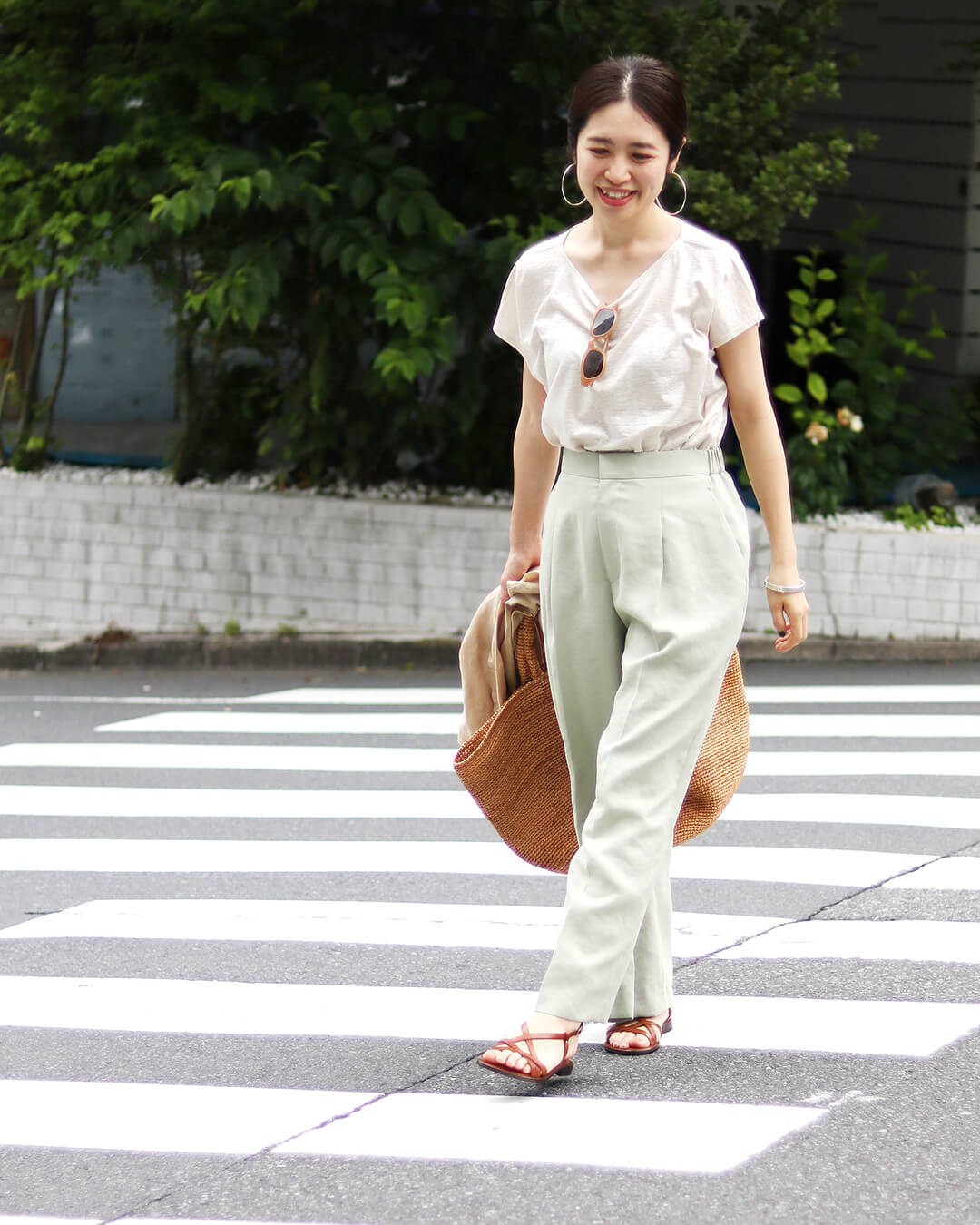 - リネン混のカットソーなら真夏でも涼しくて軽やか。