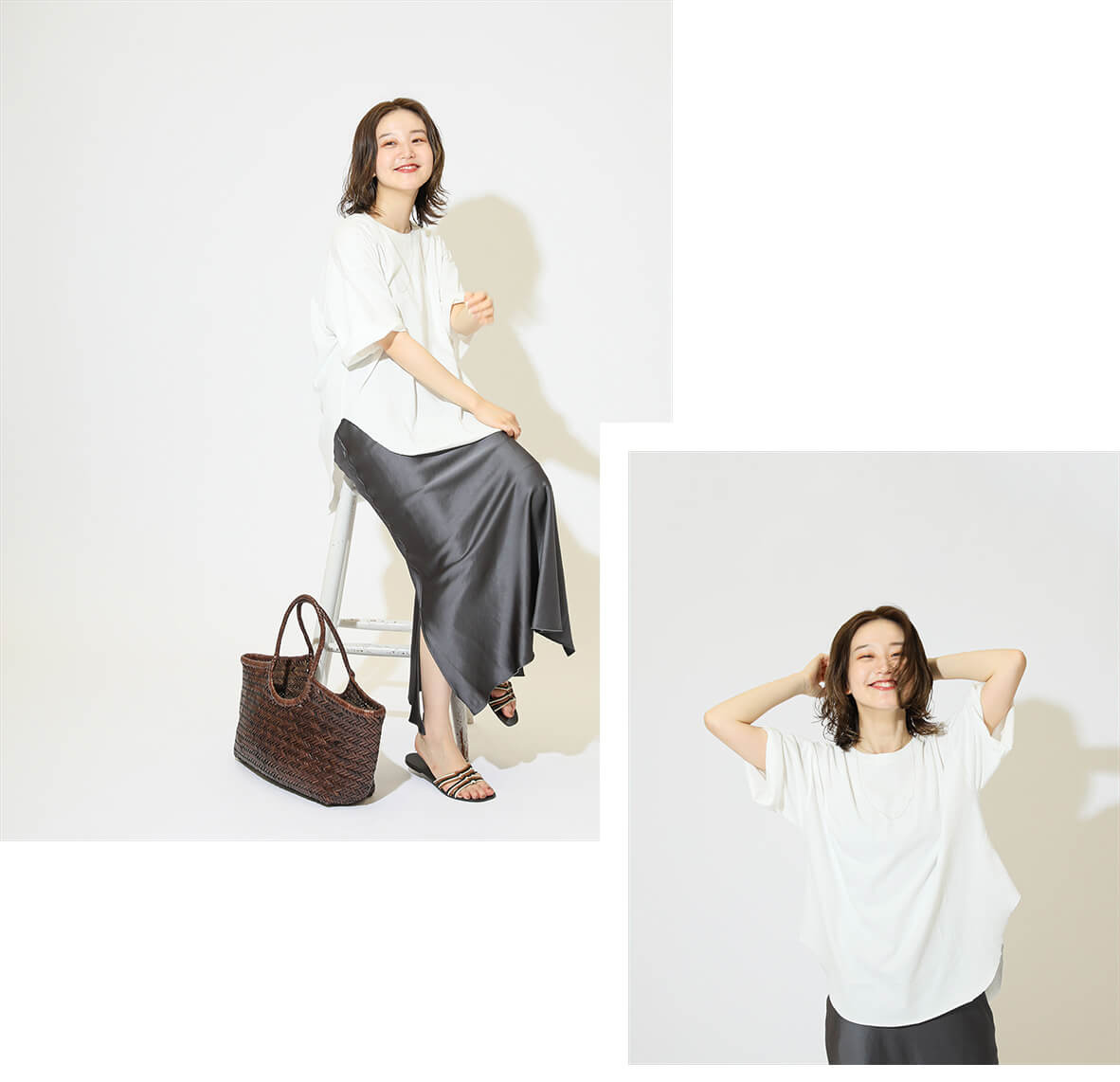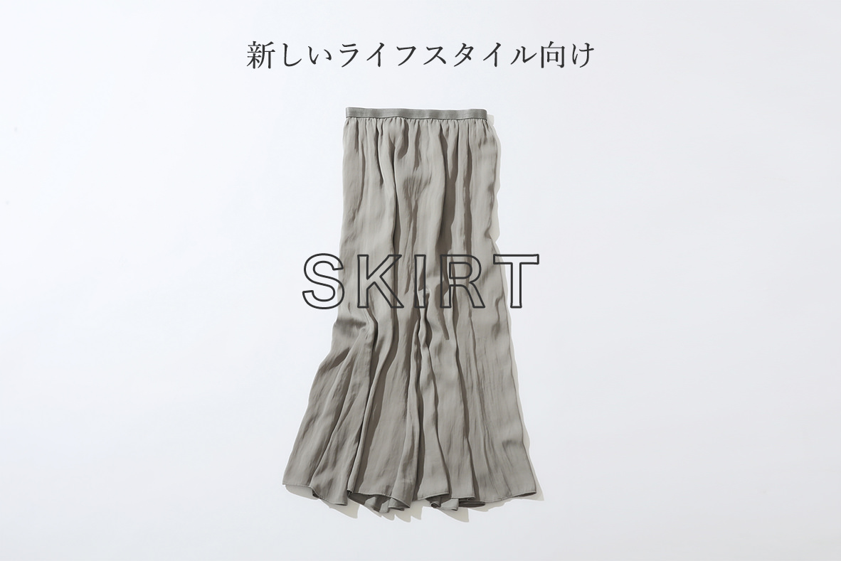 ツヤのあるスカートが新しいライフスタイルにぴったり。