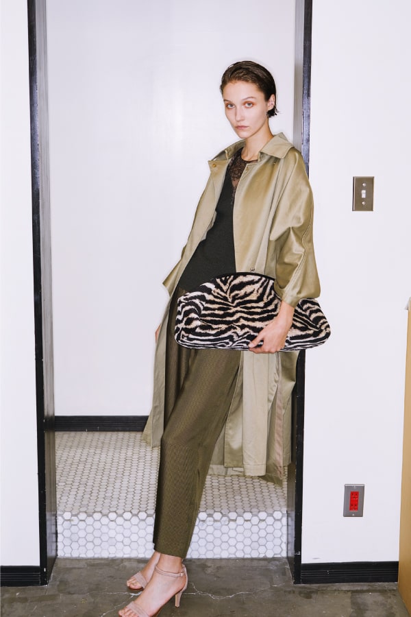 女性らしさを象徴するレースには、トレンチコートの代わりにビッグシルエットのケープの合わせで「新しいトラッドのバランス」を表現した。