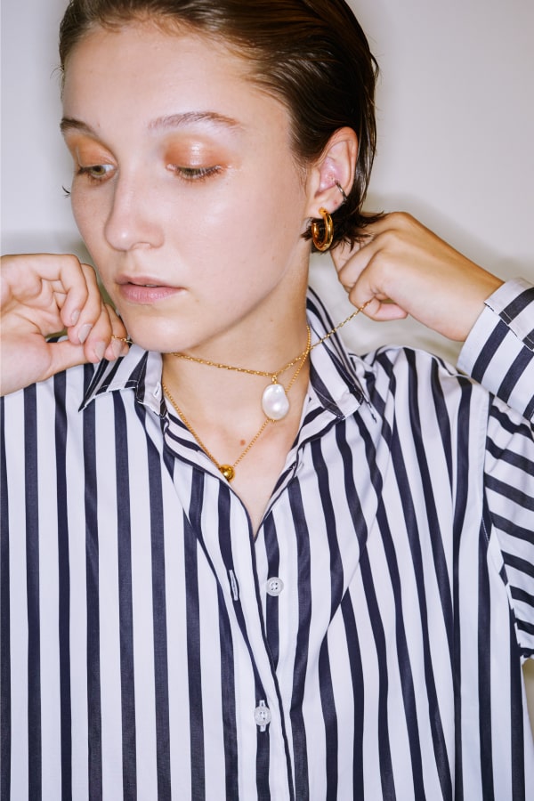 さらに、引き算したスタイリングの中に、10年・20年後も使える本物のアクセサリーや小物を一点プラスすることで、全体を引き立たせたのもMature Framework流。