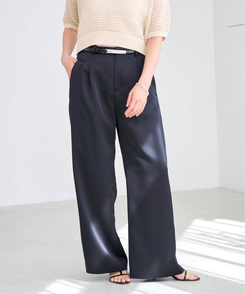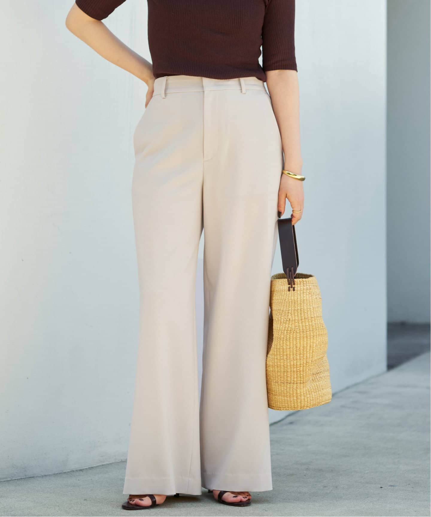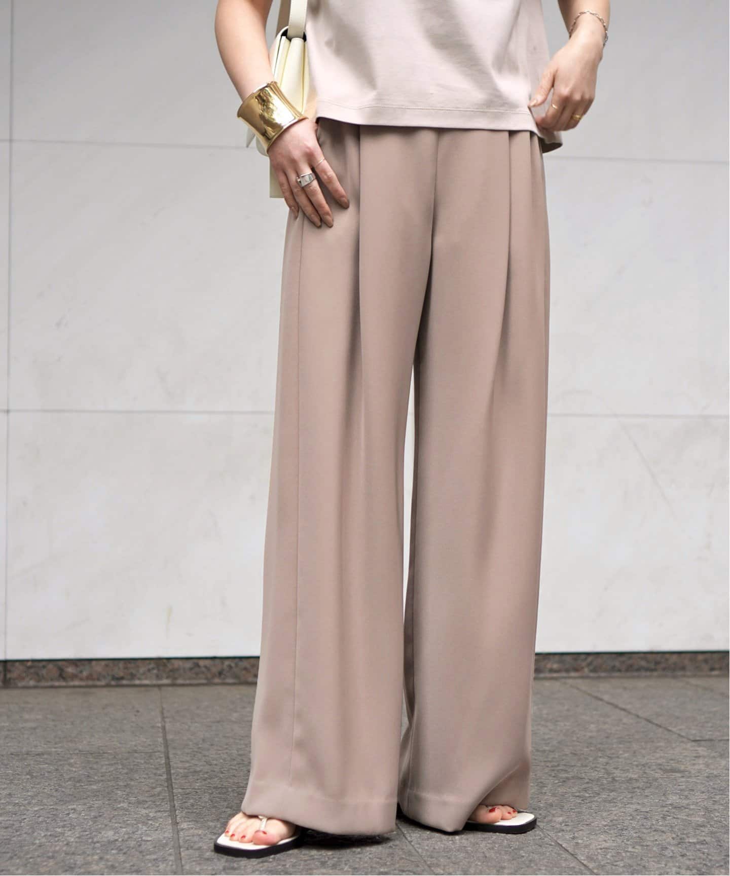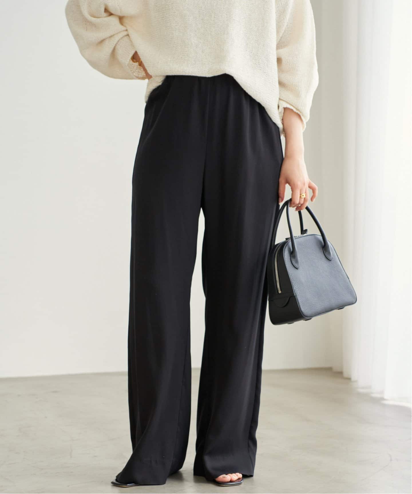 きれいめイージーパンツで上品カジュアルカジュアルになりすぎず、オフィスにも使えるきれいめイージーパンツ。上品な素材感と、程よいワイドシルエットがポイント。素材やカラーでも楽しめるアイテム。