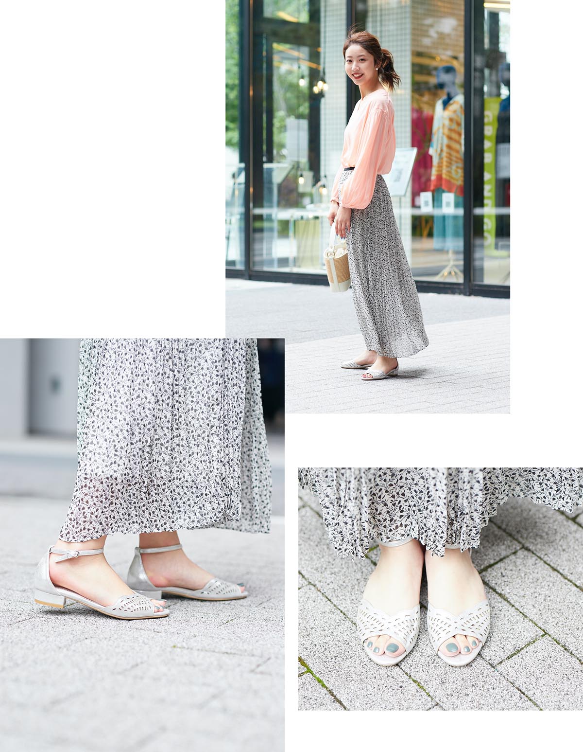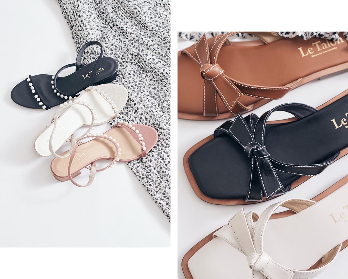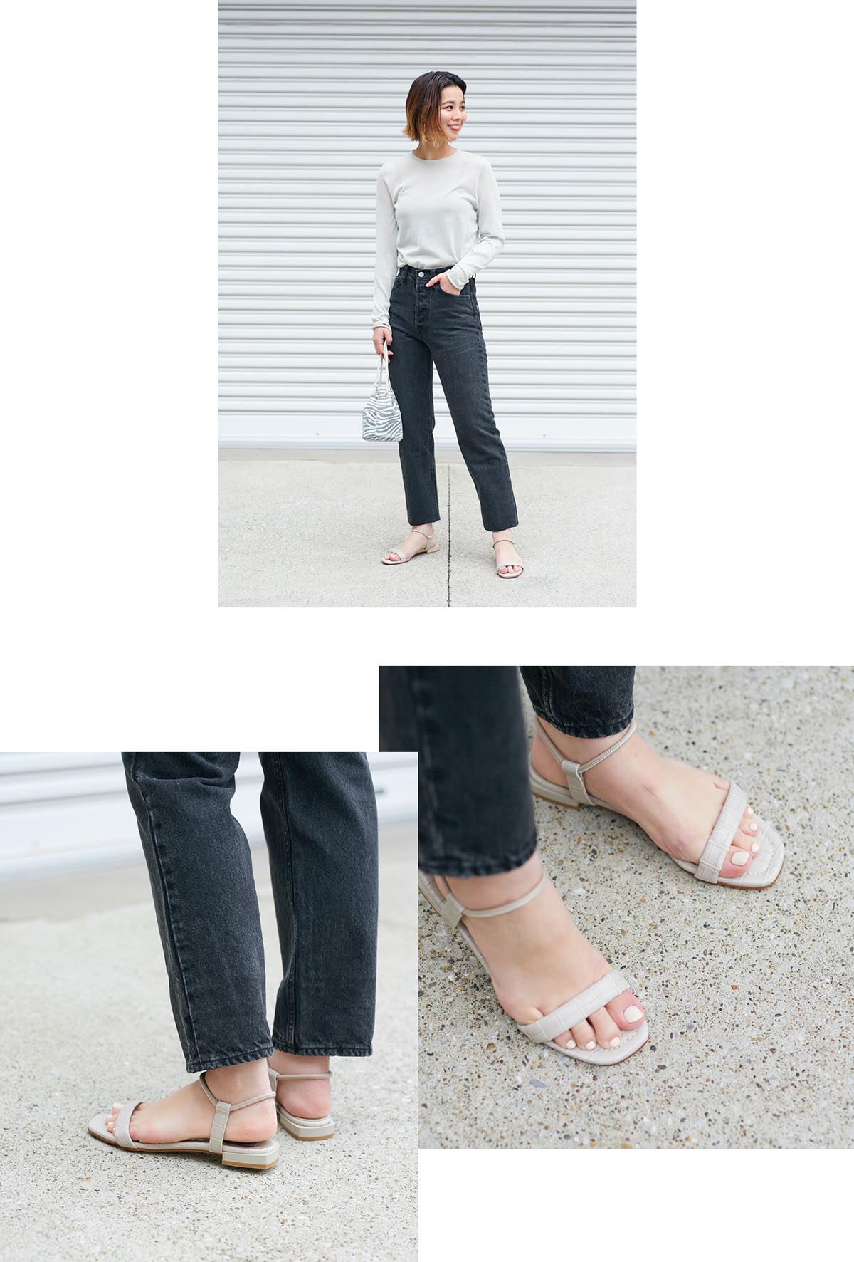 - 華奢なストラップサンダルがトレンドの今シーズン。まわりと差がつくパールやステッチリボンをあしらったデザインなら、品の良さもアップ。