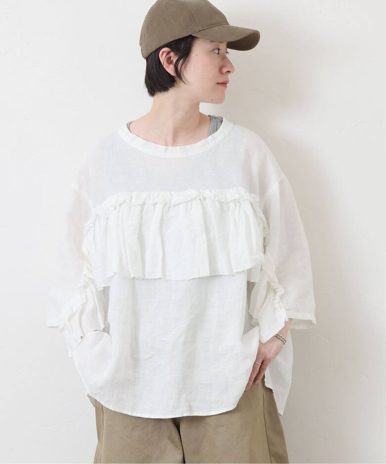 甘めディティールのトップスで