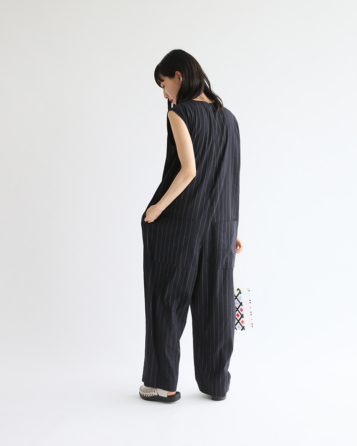 軽くてさらりとしたタッチの素材だから、暑い日でも心地良く過ごせます。- JOURNAL STANDARDLI/VISワイドストライプ サロペット◆¥19,800(税込)