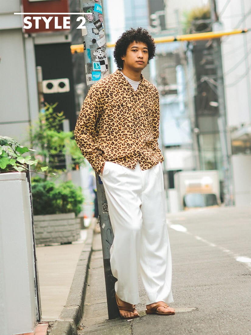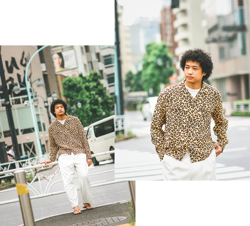 あえてホワイトのパンツを合わせて ”夏レオパード”スタイルに。 - Oriens JOURNAL STANDARD【TOYO/トーヨー】LEOPARDHIGH DENSITY RA:シャツ¥18,700(税込)