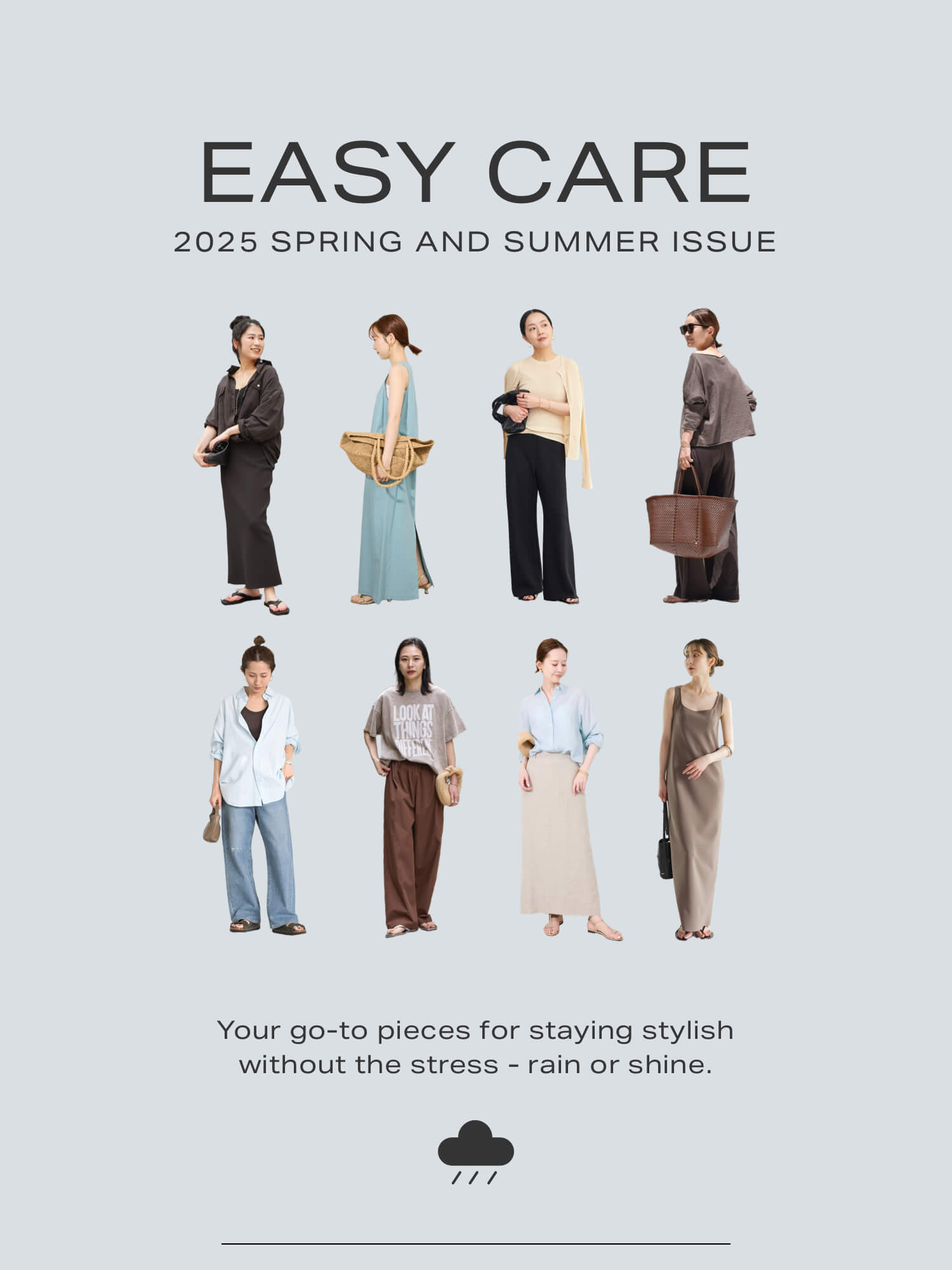 お洒落と快適さを両立!イージーケアパンツで洗練されたストレスフリーな足元に。「洗える」以外に、撥水性や防しわなどの機能性も兼ね備えた優秀なパンツが豊富なラインナップ。足元からの快適さで雨の日の憂鬱を吹き飛ばし、一日中お洒落を楽しんで。