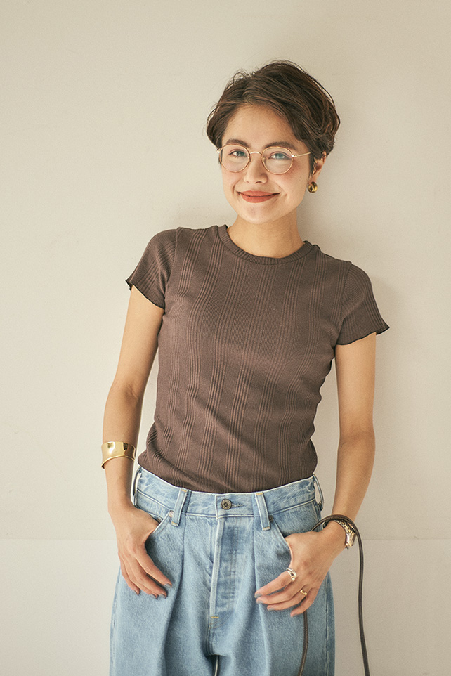 「程よいリブで、1枚で着てもヘルシーな印象にまとまります。