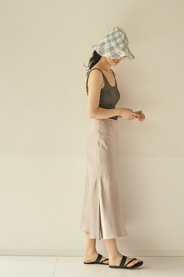サテン生地のスカートと合わせて、上品にコーディネートしました。」- EMILY WEEKOGCランダムリブタンクトップ¥9,020(税込)