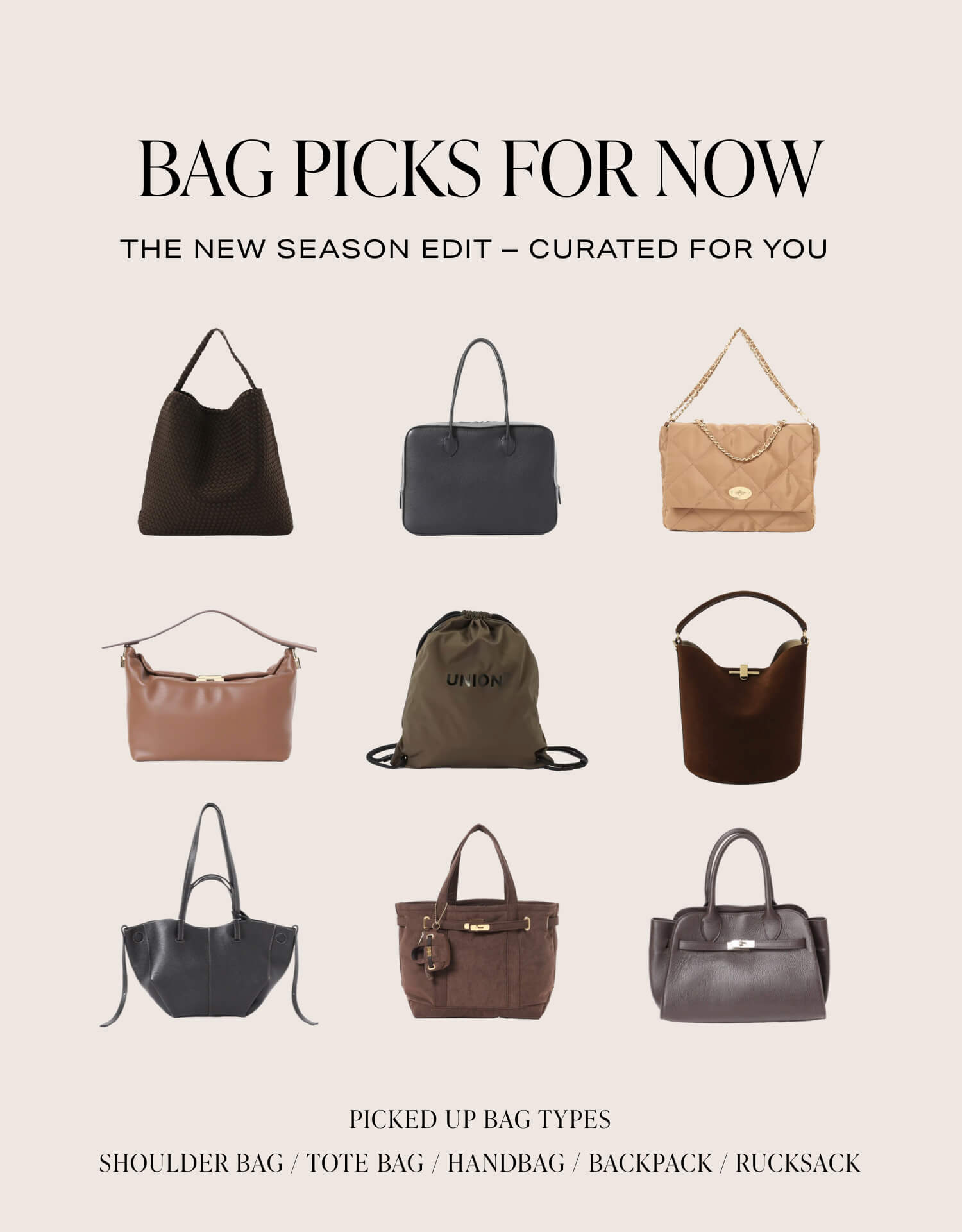 新作ハンドバッグ。今季注目のトレンドカラーや、温かみのある素材感にこだわった新作ハンドバッグが続々入荷中。持つだけで季節感を演出し、コーディネートのポイントになるデザインばかりです。