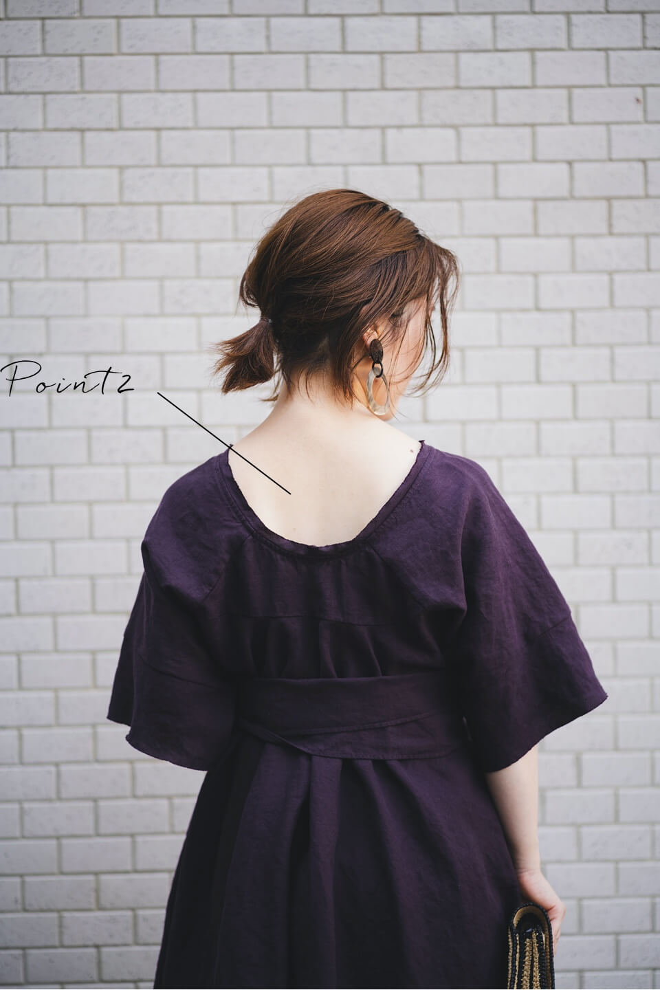 POINT2背中はゆったりと開いたUネックライン。首のラインをキレイに見せてスタイルアップ。