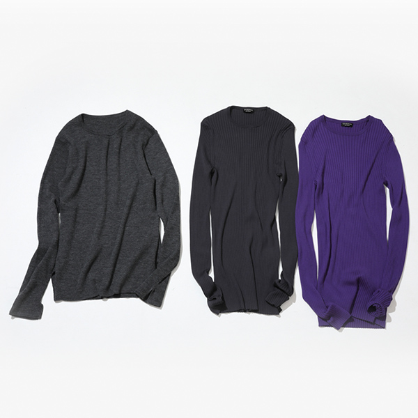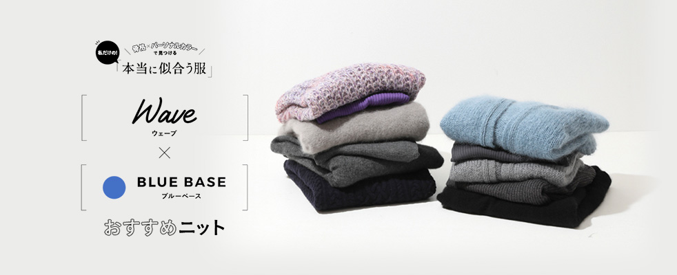 絶妙なフィット感のリブニットはウェーブさんの大定番アイテム。ネックラインが間延びしないよう、首回りが広すぎず詰まりすぎないデザインがおすすめ。太めのリブタイプなら、こなれたベーシックスタイルに。トレンドカラーの一つでもある、深みのあるロイヤルパープルが秋冬のムードにぴったりです。