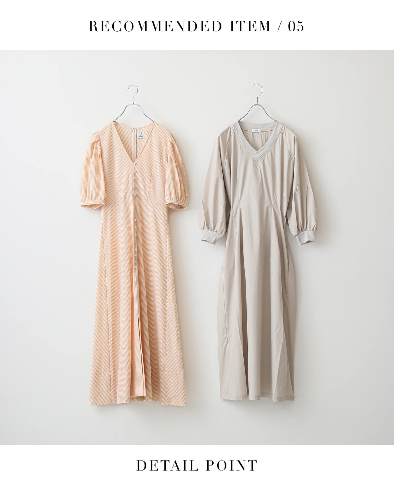 1枚で着映えてトレンド感抜群のボリュームスリーブワンピースはカラーでも差をつけて。スプリングタイプだからこそ着こなせるスパークリングオレンジ&フェザーグレーが無難にならずお洒落さをプラスしてくれます。フィット&フレアのシルエットがフェミニンムードも◎。
