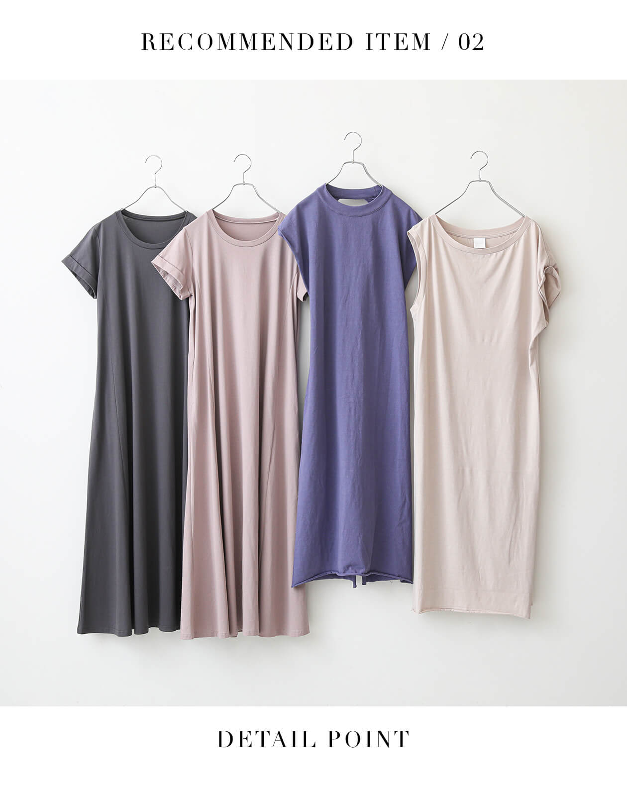 カジュアルになりがちなTシャツワンピースも、サマータイプの明るくダスティな色味を選ぶだけで上品な雰囲気に。くすみカラーはこなれ感もプラスしてくれて、ピンクも気取らずラフに着こなせます。ひとひねり加えたい時は、バックツイストがモードな印象のジャージーワンピがおすすめ。 - U by SPICK&SPANマキシフレアTEEワンピース3◆¥9,900(税込)
