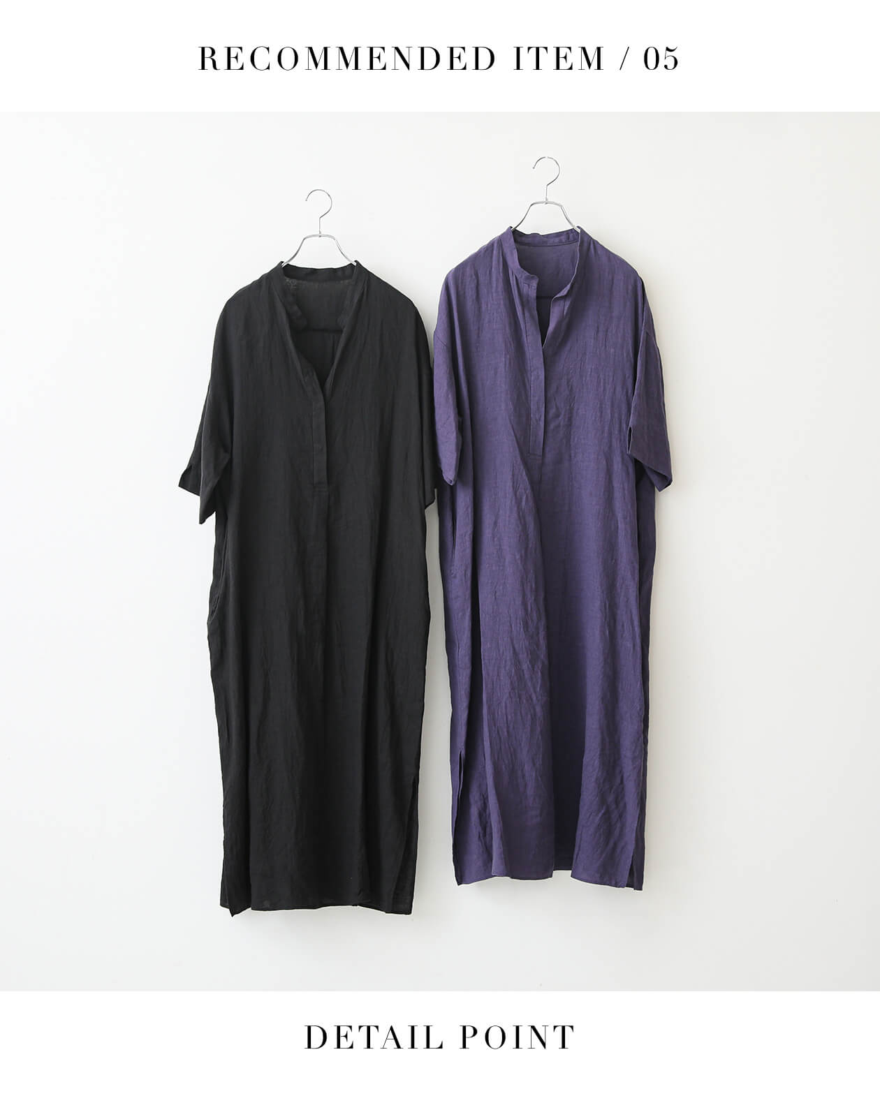 シックなブラックと深みのあるディープパープルのワンピースは、麻素材なら夏らしい着こなしに。鮮やかな色の多いウィンタータイプですが、明るさを落としたダークな色味を選べば派手になりすぎず落ち着いた雰囲気に。 - JOURNAL STANDARD L'ESSAGE60アサハンソデスキッパーワンピース¥20,900(税込)
