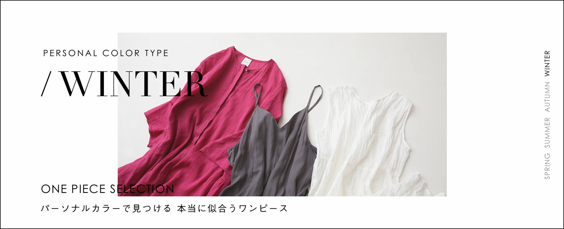 ワンピースの似合うカラーを選ぶポイント全身コーディネートの大部分を占めるワンピースは、自分に似合う色選びが何よりも重要!ブルーベースの中でも彩度の高い色がお得意なウィンタータイプはフューシャピンクやスノーホワイトなど、目を引くビビッドカラーで違いを見せつけて。