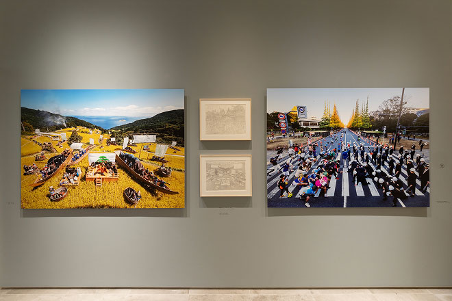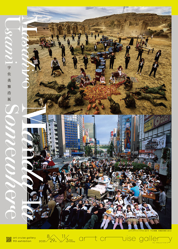 宇佐美雅浩の「Manda-la」シリーズは、各地の人々や、その人物にまつわる文化や背景を仏教絵画の「曼荼羅」のように一枚の写真に収める試みです。現地での綿密なリサーチと対話を重ね、その土地の歴史や社会を映し出す本作は、完成までに数年を要することもあります。 学生時代に始まり、25年以上続くこのプロジェクトは、まさに宇佐美のライフワークと言えるでしょう。大きな特徴ともいえる一切の合成を行わない手法は、舞台芸術を思わせる緻密な構成と演出で、写真表現として高く評価されています。